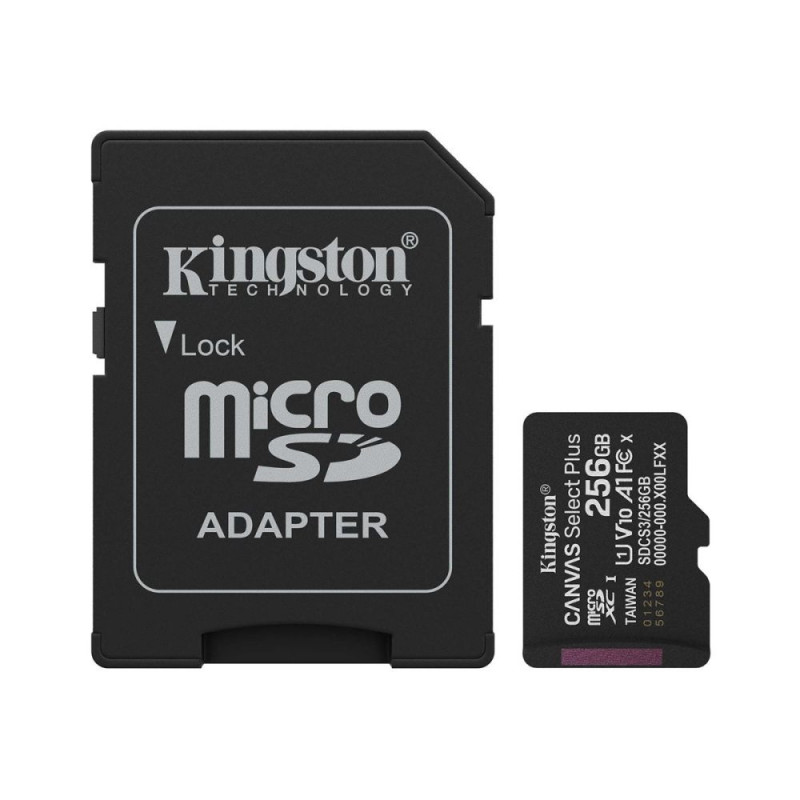 Kingston Canvas Select Plus | 256 GB | microSD | Flash memory class Class 10, UHS-I, U1/U3, video class 10/30, A1