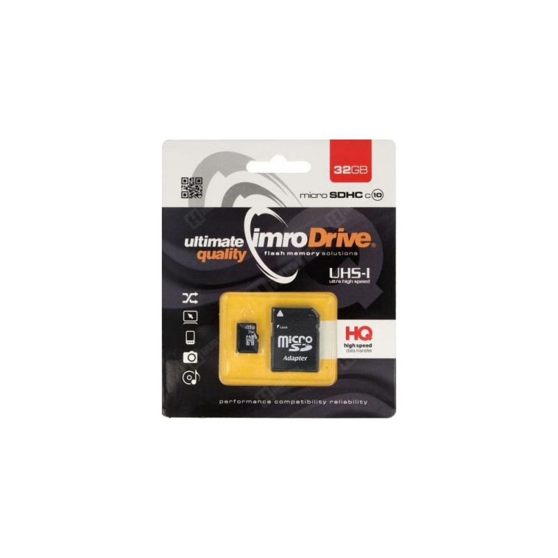 <br />IMRO Memory. Capacity: 32 GB, Flash card type: MicroSDHC, Flash memory class: Class 10, Internal memory type: UHS-I, Read speed: 82 MB/s, Write speed: 21 MB/s, UHS Speed Class: Class 1 (U1). Product colour: Black