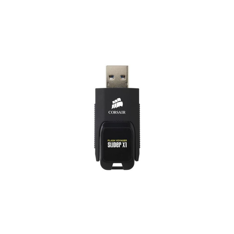 <b>A compact USB flash drive with bold styling and performance to match.</b><br><br>Flash Voyager Slider X1 has a smart design with a USB connector that retracts for protection when you’re not using it. A blue activity LED tells you at a glance if it’s transferring data.<br><br>It’s also universally compatible with Windows, Mac OS X and even Linux, with no driver necessary. It supports high-speed USB 3.0 transfers along with full USB 2.0 compatibility, so you can use it with virtually any desktop or notebook.Corsair Voyager Slider X1 64GB. Capacity: 64 GB, Device interface: USB Type-A, USB version: 3.2 Gen 1 (3.1 Gen 1), Read speed: 130 MB/s. Form factor: Slide. Weight: 9 g. Product colour: Black