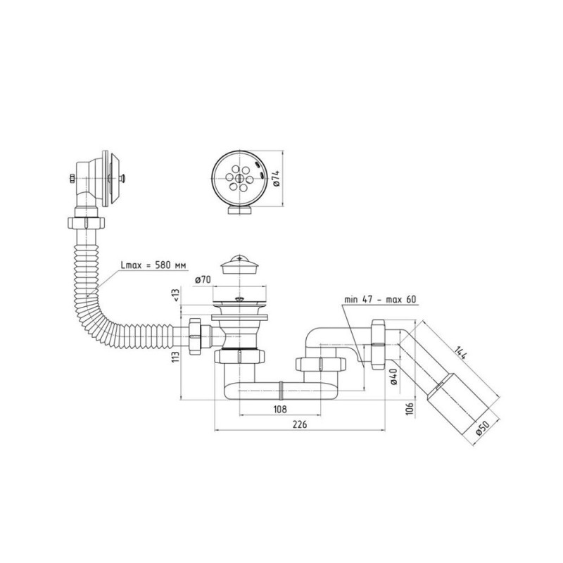 vannilõks väljalaske ülevool 1 1/2 painduv E056