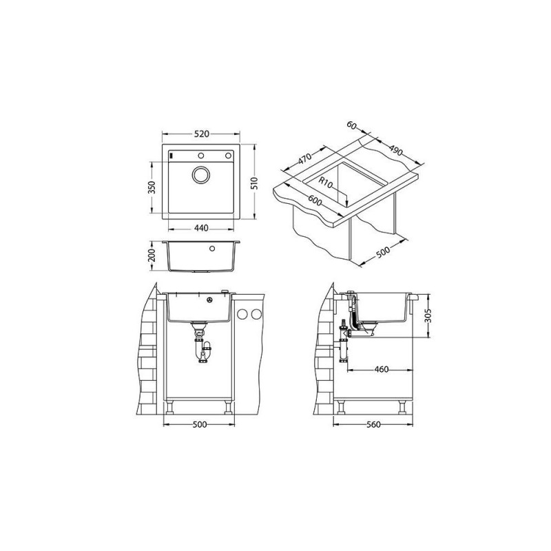 Graniitvalamu Alveus Formic 20 (must metallik) koos ventiili, sifooniga