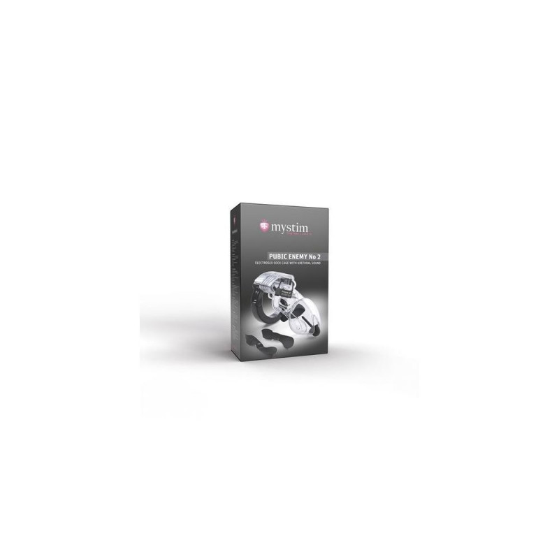 <b>Get yourself together, boy!</b><br><br>Your days of sexual liberty are over. The Pubic Enemy No1 will make sure, it’ll be noticeably restricted. Insubordinate rascals can be caught and locked away in this neat cock cage with e-stim function. It can only become hard when one takes pity on opening the restricting protective armor.<br><br><b>E-Stim</b><br><br>Persistent disorder must of course be punished. According to the mood of the caregiver and exactly in the intensity you deserve. Through the conductive surfaces on the left and right side of the cage, a gentle tingling, strong twitching or intensive pulsation passes through your best parts. You're already whimpering for mercy at the very thought of it? Well. you’re lucky. Since the conductive surfaces can be removed in no time, our e-stim chastity device is also suitable for stubborn first-time offenders. But don't you relax too soon. If you become so insolent as a prisoner that only electricity can help, the conductive surfaces can simply be reinstalled.<br><br><b>Size</b><br><br>Well, do you match the famous 20cm? Don’t worry - Pubic Enemy No 1 most certainly will fit your member, as well. The length can be individually adjusted in four steps and the diameter of the clamp can be fixed to six different sizes. No need to puss out just now.<br><br><b>Scope of supply</b><br><br>Hard shell, hard core: The Pubic Enemy No 1 and its accessories are discreetly and securely stored in an elegant hard-shell case. In addition to the cock cage (including the conducting surfaces) the scope of delivery also includes the detailed instructions in seven languages and the matching 2 mm long cable for connection to the Mystim stimulation current devices.<br><br><b>Intensified imprisonment</b><br><br>No way of escaping: A metal lock with engraved Mystim emblem and a set of five plastic disposable seals would convict you immediately. And we thought about forgetful subs with a stack of signs including the writing "Hands off! This prisoner belongs to ___". Sliding into the cock cage holder, each plate reminds you to whom the contents of the cage belong.Mystim 46621. Product type: Penis chastity, Product colour: Transparent, Material: Plastic, Silicone. Width: 33 mm, Height: 82 mm. Quantity per pack: 1 pc(s)