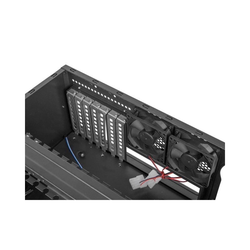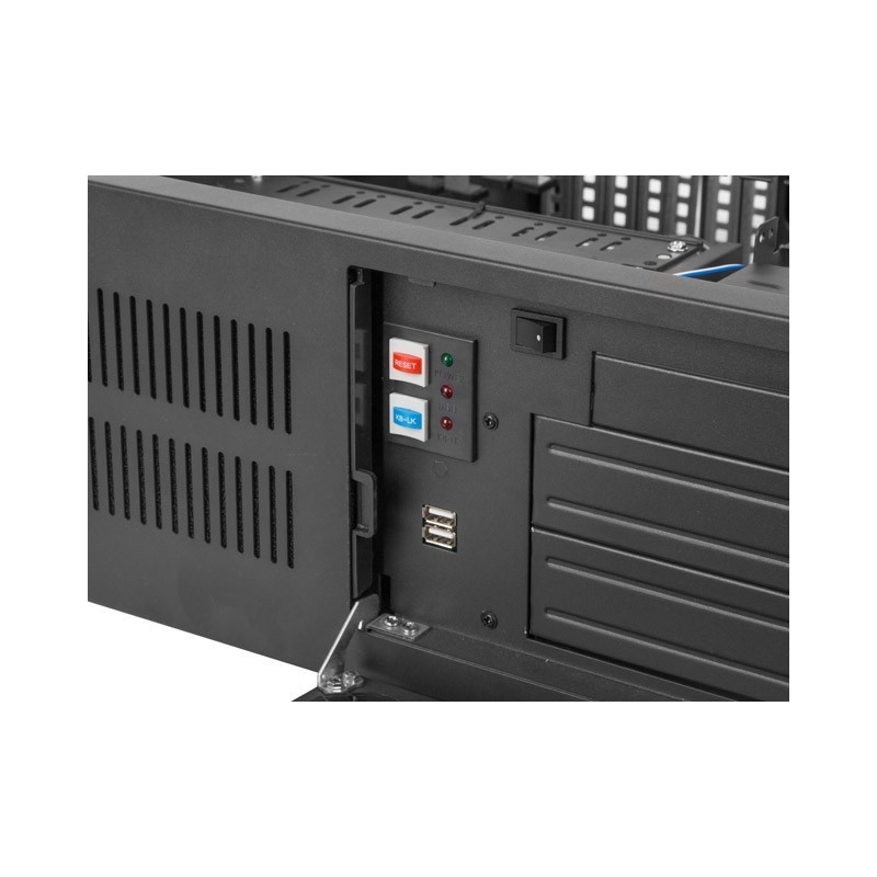 | Other features | - Height: 4U - Sheet thickness: 1.0 mm - Material: SPCC - Buttons: power, reset, keyboard lock (KB-LK) - LED diodes: power supply, reset, keypad lock (KB-LK) - Number of expansion card slots: 7 - Expansion card slot type: standard PCI plugs - Working temp |