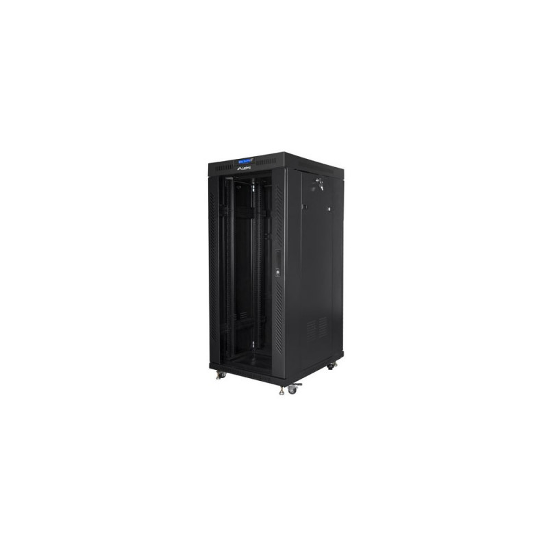 RACK CABINET 19" FREE-STANDING 27U/600X800 (FLAT PACK) WITH GLASS DOOR LCD BLACK LANBERG V2