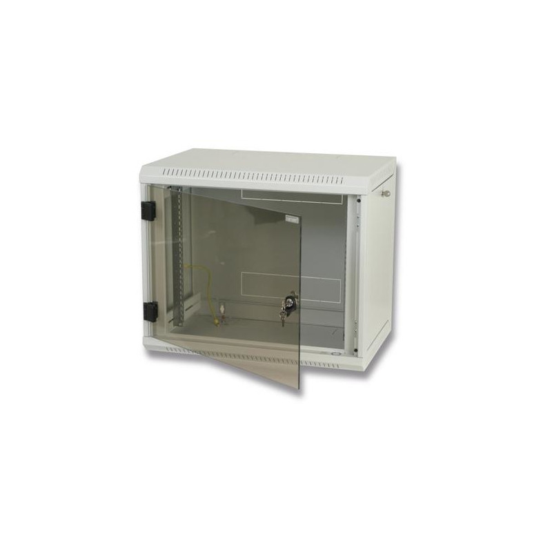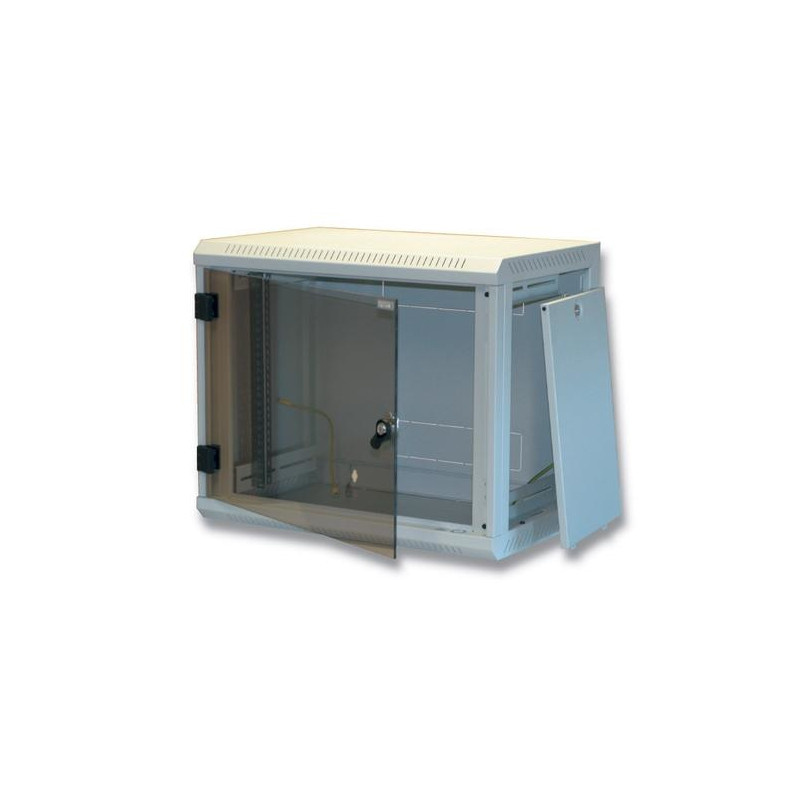 Due to fully welded construction we kept the maximal permissible load capacity of 30 kilos. Main advantage of Delta U is removable side panels, which enable access to installed components from the back side of the cabinet. The glass or fully metal door is possible to open in a range of almost 180°. In case of necessity it is also possible to easily remove the door or change direction of opening from the left side to the right.<br><br>Cable entries are located at the top and bottom of the cabinet. Another two cable entries are located at the back panel. All entries are blanked with a „break-out” style banking panels.<br><br>One pair of 19” vertical rails is located inside and it can be adjusted infinitely back and forth in the depth of the cabinet. All parts of the cabinet are mutually connected with earthing system.<br><br>Perforation ensures natural cooling of installed equipment. The cooling can be if necessary forced by 19” fan units.<br><br>- Safety hardened glass 5 mm thick<br>- Steel sheetTriton 19" Rack Wall-mount 12U/400 Removable side. Type: Wall mounted rack, Maximum weight capacity: 30 kg. Weight: 21.3 kg. Product colour: Grey
