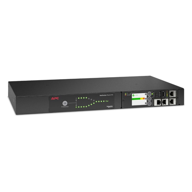 APC Netshelter Rack Automatic Transfer Switch, 1HE, 10A, 230V, C14 IN, 12 C13 OUT, 50/60Hz. Sisendi tööpinge (min): 207 V, Sisendi tööpinge (max): 253 V, AC sisendsagedus: 50 - 60 Hz. Vormitegur: Rackmount, Räki maht: 1U, Toote värv: Must. AC-väljundite arv: 12 AC-väljundit, AC-pistiku tüübid: C13-liitmik. Laius: 432 mm, Sügavus: 236 mm, Kõrgus: 44 mm