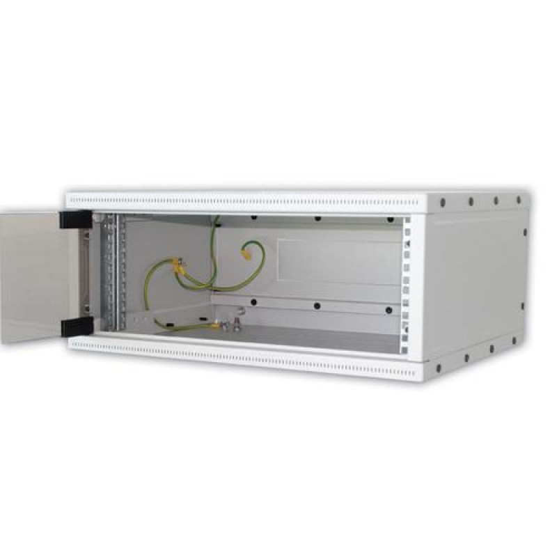 Delta X – wall-mounted cabinet represents the conception of „flat pack“, which means demountable cabinet that is supplied disassembled. Thanks to the unique construction the assembly procedure of Delta X takes couple of minutes and it almost does not require any tools. The plastic pins are used to join all parts of the cabinet.<br><br>19" vertical rails can be adjusted within the depth of the cabinet in prepared positions. Verticals are fixed to the body of the cabinet by screws.<br><br>Cable entries are located in the top and bottom of the cabinet. Another one is in the middle of the back side. Each entry point is covered by a „break out“ style blanking panel, which can be easily broken out by a screwdriver for example. All metallic parts of the cabinet are mutualy earth connected.<br>These cabinets are supplied with fully glass door with lock only. It is possible to mount the door for opening from the left or right side.Triton RXA-09-AS4-CAX-A1. Type: Wall mounted rack, Rack capacity: 9U, Maximum weight capacity: 25 kg. Weight: 15.1 kg. Product colour: Grey