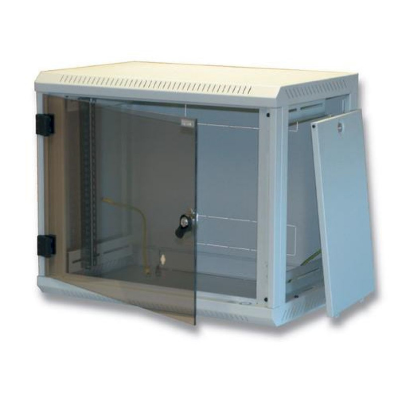 Due to fully welded construction we kept the maximal permissible load capacity of 30 kilos. Main advantage of Delta U is removable side panels, which enable access to installed components from the back side of the cabinet. The glass or fully metal door is possible to open in a range of almost 180°. In case of necessity it is also possible to easily remove the door or change direction of opening from the left side to the right.<br><br>Cable entries are located at the top and bottom of the cabinet. Another two cable entries are located at the back panel. All entries are blanked with a „break-out” style banking panels.<br><br>One pair of 19” vertical rails is located inside and it can be adjusted infinitely back and forth in the depth of the cabinet. All parts of the cabinet are mutually connected with earthing system.<br><br>Perforation ensures natural cooling of installed equipment. The cooling can be if necessary forced by 19” fan units.<br><br>- Safety hardened glass 5 mm thick<br>- Steel sheetTriton 19" Rack Wall-mount 12U/400 Removable side. Type: Wall mounted rack, Maximum weight capacity: 30 kg. Weight: 21.3 kg. Product colour: Grey
