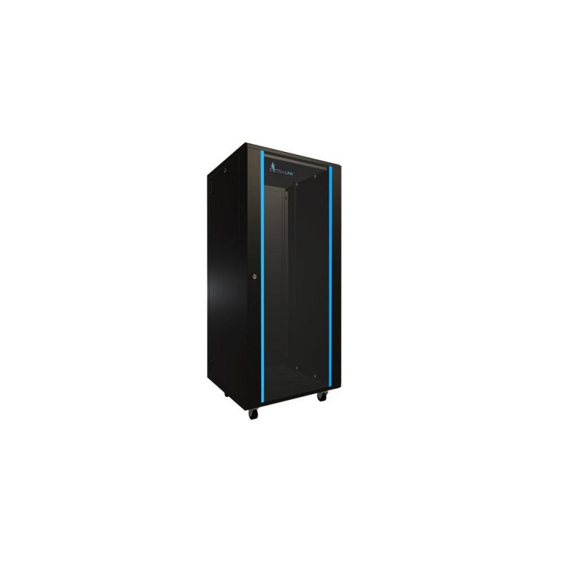 The EXTRALINK standing rack cabinet with a height of 27U and dimensions of 600 × 600 mm is the perfect solution for offices, network server rooms, and areas where CCTV systems are installed. Its outer walls are made of cold-rolled steel sheet, and the front doors are made of tempered glass that opens both to the left and right.<br><br>The cabinet is designed with functionality in mind, as evidenced by the height markings on the vertical rails. With a height of 27U, it provides ample space for mounting a larger number of devices. The total height of the cabinet is 132 cm, making it a practical solution for various applications.<br><br>The side walls can be easily disassembled thanks to the snap fasteners used. The package also includes locks and keys, which enhance the security of the stored devices.<br><br>The bottom panel of the cabinet features five cable management pass-throughs, making it easier to organize and manage cabling. This reduces the risk of cables being pinched or tangled, which is crucial for maintaining order in the workspace.<br><br>On the top of the cabinet, there is a ventilation outlet and an additional two cable management pass-throughs, ensuring optimal conditions for the stored devices.<br><br>Key features of the cabinet include front and rear doors with a small lock, made of tempered glass, which are reversible, allowing for installation on either the right or left side. The cabinet boasts excellent design, precise dimensions, and meticulous craftsmanship. Adjustable feet and heavy-duty wheels provide stability, while adjustable dimensions for cable entries on the top cover and bottom plate facilitate device connections. The reliable body connection using a serial connection kit and removable side panels simplify maintenance, making this cabinet an ideal choice for professional applications.Extralink Rackmount cabinet 27U 600x600 Black standing. Type: Freestanding rack, Rack capacity: 27U, Maximum weight capacity: 600 kg, Key lock, Adjustable feet, Rack rails, Product colour: Black