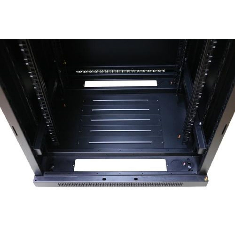 The EXTRALINK standing rack cabinet with a height of 22U and dimensions of 600 × 800 mm is an ideal solution for offices, server rooms, and control rooms for CCTV systems. Its outer walls are made of cold-rolled steel sheet, ensuring durability and stability. The front doors, equipped with tempered glass, can be opened from either the left or right side.<br><br>The height of the cabinet is clearly marked, making it easier to install devices. The vertical rails have a height of 22U, providing sufficient space for placing more equipment. The total height of the cabinet is 110 cm.<br><br>Thanks to the latches on the side walls, disassembly of these panels is quick and easy. The set also includes locks and keys, enhancing the security of the stored devices.<br><br>The lower panel of the cabinet features five cable management openings, significantly reducing the risk of cables being pinched or tangled. Additionally, the top of the cabinet has a ventilation outlet and two cable extraction openings, facilitating cable management.<br><br>The main features of the rack cabinet include: front and rear doors with a small lock made of tempered glass, the ability to open doors in both directions, meticulous craftsmanship, and precise dimensions. The cabinet is equipped with adjustable feet and heavy-duty wheels. Furthermore, the dimensions of the cable entry points on the top cover and bottom plate are adjustable, allowing them to be tailored to various needs. The connection of the body using a serial connection kit and removable side panels makes maintenance and servicing of devices easier.Extralink Rackmount cabinet 22U 600x800 Black standing. Type: Freestanding rack, Rack capacity: 22U, Maximum weight capacity: 726 kg, Key lock, Rack rails, Product colour: Black