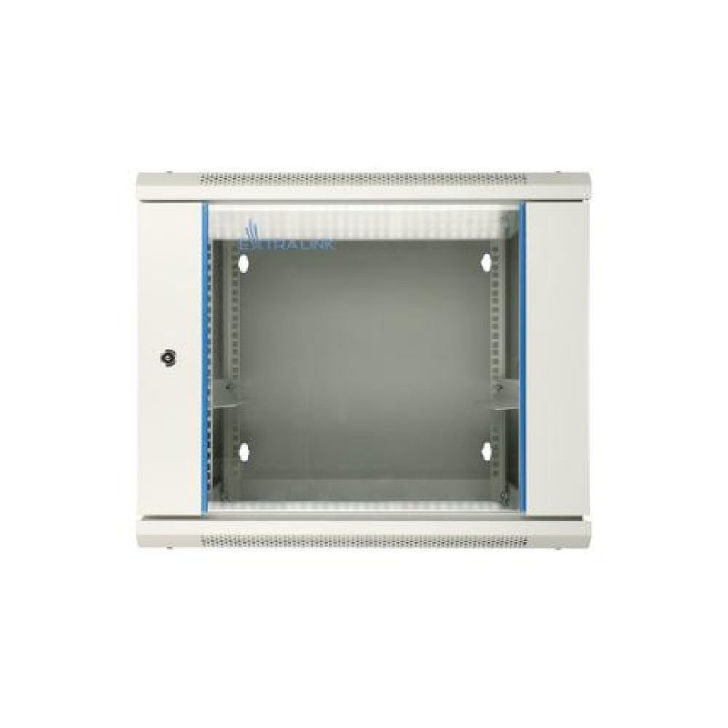 The two-section rack cabinet by EXTRALINK - AZH, with a height of 12U and dimensions of 600 × 600, is the perfect solution for wall mounting in offices, server rooms, and CCTV control rooms. The external walls of the cabinet are made of cold-rolled steel, ensuring durability and resistance to damage. The front doors, equipped with tempered glass, can open both left and right, facilitating access to the interior. The two-section design of the cabinet allows for easy access to installed components from the back.<br><br>The cabinet features clearly marked vertical rails, making it easy to mount devices. The height marking is 12U (from the English unit), and the total height of the cabinet is 64 cm, making it suitable for various applications.<br><br>An additional advantage of the cabinet is the easy disassembly of the side walls. Thanks to the latches on the side panels, disassembly is quick and simple, and the locks and keys included provide extra security.<br><br>The cabinet's ceiling is adapted for fan installation, allowing for effective cooling of installed devices. The ceiling has two spots for fans and two additional cable pass-throughs, facilitating the organization of the internal space.Extralink Rackmount cabinet 12U 600x600 AZH Gray wall mounted, swing type. Type: Wall mounted rack, Rack capacity: 12U, Maximum weight capacity: 60 kg, Key lock, Rack rails, Product colour: Grey