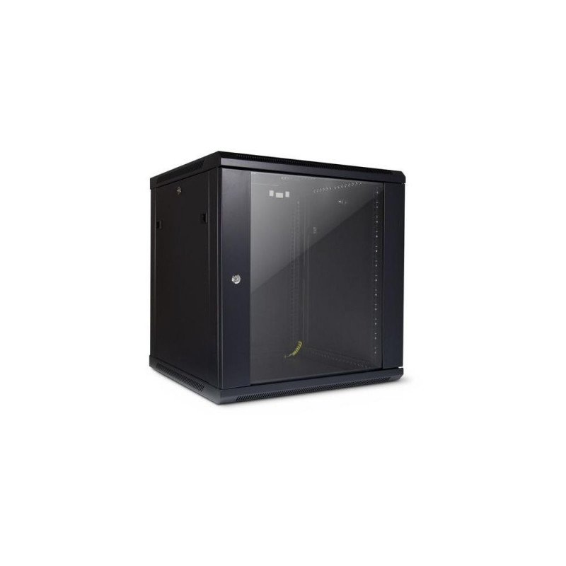 The SMA-6612 wall-mounted rack stands out for its low height of just 12U and a depth of only 450mm, offering a space-saving alternative compared to large and bulky server & network cabinets.<br><br>With a material thickness between 1.25 and 1.50 mm, the wall-mounted rack carries a total load of up to 40kg and also complies with the IP20 protection class. The rack is powdercoated in the colour RAL 9005 and can be closed both by the integrated door made of tempered glass and by the individually removable side panels. Cable inlets in the lid and in the floor also ensure a clean routing of the cables. Two optional 120mm fans, which find their place in the lid, support the case during ventilation.Inter-Tech SMA-6612. Type: Wall mounted rack, Rack capacity: 12U, Maximum weight capacity: 40 kg, Key lock, International Protection (IP) code: IP20. Weight: 23.5 kg. Product colour: Black