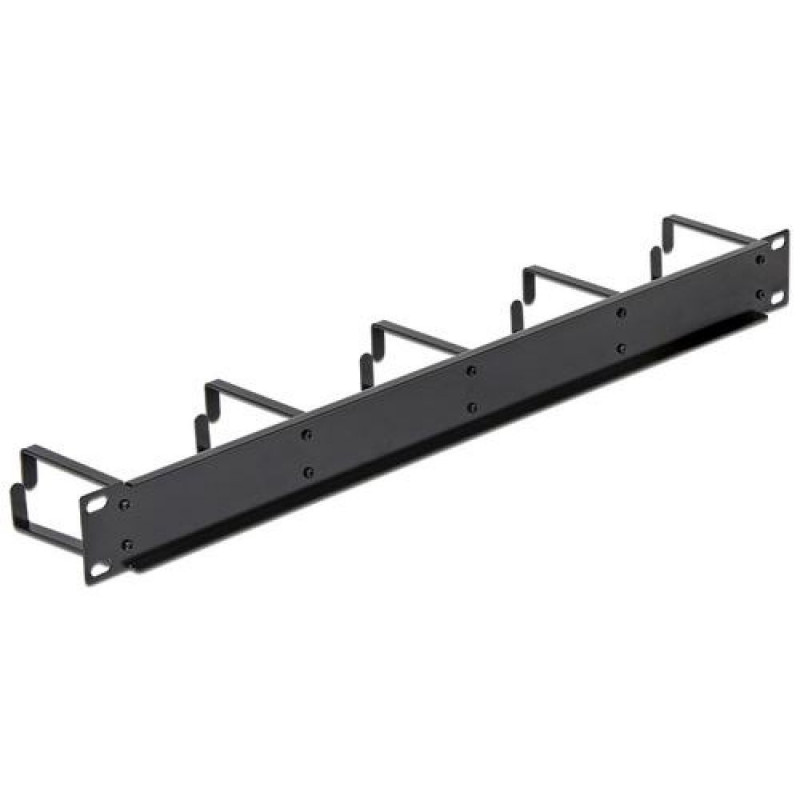 This Cable Management Panel by Delock can be mounted in a 19″ rack. With the solid metal D-ring hooks the patch cords can be neatly routed horizontally.DeLOCK 42496. Product colour: Black, Housing material: Metal, Rack capacity: 1U. Size (imperial): 48.3 cm (19"), Width: 482.6 mm, Depth: 76.4 mm
