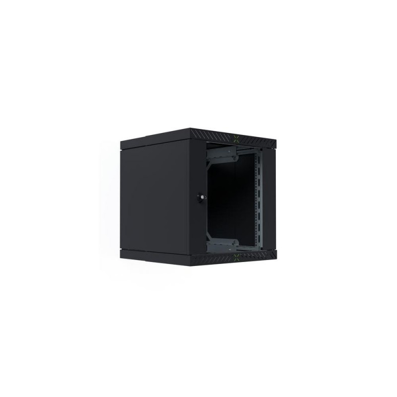 Steel sheet housing with swiveling frame, self-ventilated, not pre-assembled<br>Housing continuously depth adjustable from 400 .. 600 mm<br>Secured side walls, can only be removed after opening front door<br>Inside front-sided 2 x 19“ profile, additionally depth-adjustable by 50 mm<br>Front door with window of certified safety-glass (4 mm) and latch locking<br>Door stop changeable due to stable, spring-loaded metal hinges<br>Door angle adjustable due to adjustable hinges<br>Door opening angle 120°<br>Roof and bottom with pre-punched openings for cable entry (190 x 90 mm)<br>Rear sided open frame with additionally positions for cable management<br>Roof and bottom prepared for accommodation of single fan Art.-No. 691664<br>Cabinet parts inside completely grounded, M5 grounding bolt at base frame<br>Max. load 60 kg (statically equally distributed), protection degree IP20<br>Paint finish RAL7035, light grey / RAL9005, jet black<br>Scope of delivery: 2 x key, earthing cable<br>Delivery un-assembled in transport packaging (3 packages, rear frame + outer parts + front door)EFB Elektronik WGX-1206TS.G1. Type: Wall mounted rack, Rack capacity: 12U, Maximum weight capacity: 60 kg, Key lock, International Protection (IP) code: IP20, Product colour: Black