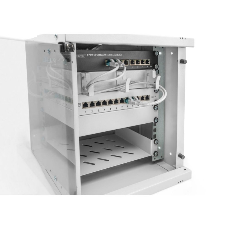 Digitus seinakapp SOHO Pro – 254 mm (10") – 315x300 mm (LxS). Tüüp: seinakinnitusega riiul, rack’i maht: 6U, maksimaalne kandevõime: 60 kg, lukustatav, täiustatud kaablite haldus, kandesiinid, rahvusvaheline kaitseklass (IP-kood): IP20. Kaal: 4,58 kg. Toote värvus: hall.