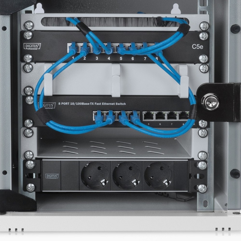 Digitus seinakapp 254 mm (10") – 312x300 mm (LxS). Tüüp: seinale kinnitatav riiul, Riiuli maht: 6U, Maksimaalne kandevõime: 30 kg, Rahvusvaheline kaitseklass (IP-kood): IP20, Toote värvus: hall