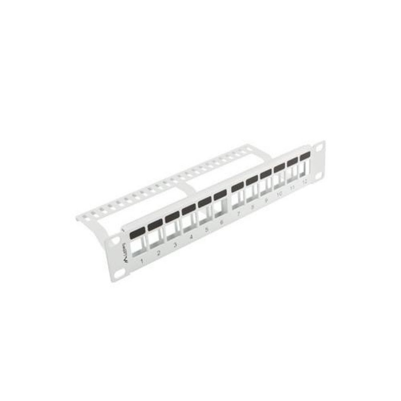 Lanberg's blank patch panel is designed to be fitted with keystone modules, both network-related like RJ45, RJ11, RJ12, as well as, for audo-video-data eg. HDMI, USB, F, BNC etc.<br><br>Product specification:<br>- Modular 10" blank patch panel for keystone installation.<br>- Possibility to place up to 12 keystone modules.<br>- Fast, simple assembly.<br>- Metal housing.<br>- Color: gray.<br><br><br>The recommended keystone modules are those that have an assembly of 180 degrees.<br>KSU6-1000<br>KSUA-1000<br>KSU5-1000<br>KSF5-1000<br>KSF6-1000Lanberg PPKS-9112-S. Rack capacity: 1U, Product colour: Grey, Material: Metal. Width: 254 mm, Depth: 99.3 mm, Height: 44.5 mm