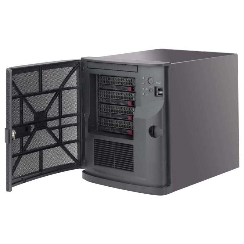 Supermicro CSE-721TQ-350B2. Vormifaktor: Mini Tower, Tüüp: Server, Toote värvus: Must. Toiteallikas: 350 W. Paigaldatud tagumine ventilaator: 1x 120 mm, toetatud tagumise ventilaatori läbimõõt: 120 mm. Toetatud kõvaketta suurused: 2,5", 3,5". Laius: 210,1 mm, sügavus: 279,4 mm, kõrgus: 240 mm.