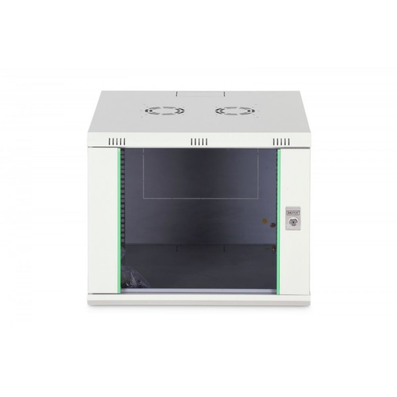 | Other features | Single glass front door Depth: 600 mm Color: Light gray, RAL 7035 Load capacity: 60 kg Side panels on both sides Width: 600 mm Cabinet type: Wall-mounted cabinet Height [U]: 9 |