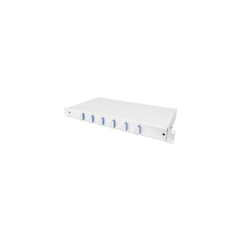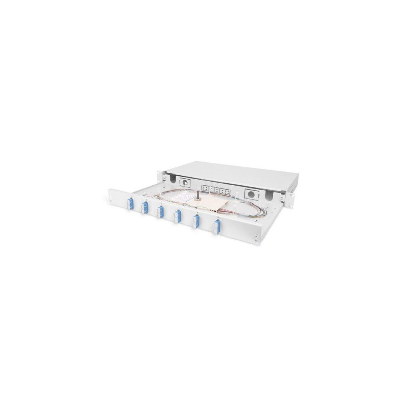 - Splice boxes are installed permanently in the network cabinet to bundle the fiber optic cables that converge there - comparable to a patch panel for<br>- In the network cabinet, the signal from the fiber optic cable can be connected to switches, media converters, routers, modems, servers, SFP modules or FTTH / FTTB via patch cables.<br>- The fiber pigtails used are colour-coded in accordance with DIN IEC 60304 and inserted into the splice cassette(s).<br>- The housing material used is 1 mm thick sheet steel, which is painted or powder-coated in the color grey (RAL 7035).<br>- The splice box is already prefabricated - an assembled splice cassette and corresponding couplings for the front panel are already installed.<br><br>FO splice box, 1U, equipped, 6x SC DX, OS2,incl. splice cassette, colored pigtails, couplersDigitus Fiber Optic Splice Box, Equipped, SC, OS2. Fiber optic connector: SC, Fibre optic type: OS2. Mounting: Rack mounting, Rack capacity: 1U, Product colour: Grey. Width: 483 mm, Height: 44.5 mm, Depth: 280 mm. Package width: 315 mm, Package length: 51.5 cm, Package depth: 515 mm. Country of origin: China