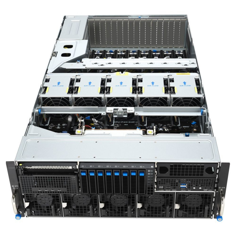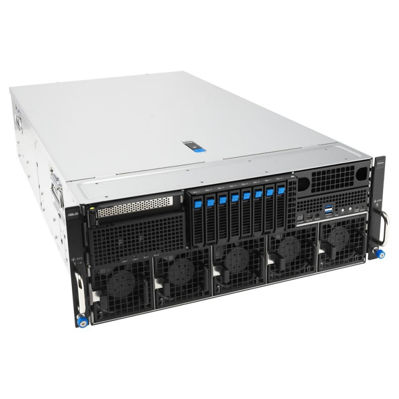 ASUS ESC8000A-E13. Protsessoripesa: LGA 6096, Protsessori tootja: AMD, Protsessori perekond: AMD EPYC. Toetatud operatiivmälu: DDR5-SDRAM, Toetatud DIMM-mooduli mahud: 16GB, 32GB, 64GB, 128GB, Maksimaalne operatiivmälu: 3 TB. Toetatud salvestusseadmete suurused: 2.5". Korpuse tüüp: Rack (4U), Toote värv: Hõbe, Sertifikaadid: BSMI, CB, CE, FCC(Class A), RCM. Toiteallikas: 3200 W, AC sisendpinge: 220 - 240 V, AC sisendsagedus: 50/60 Hz