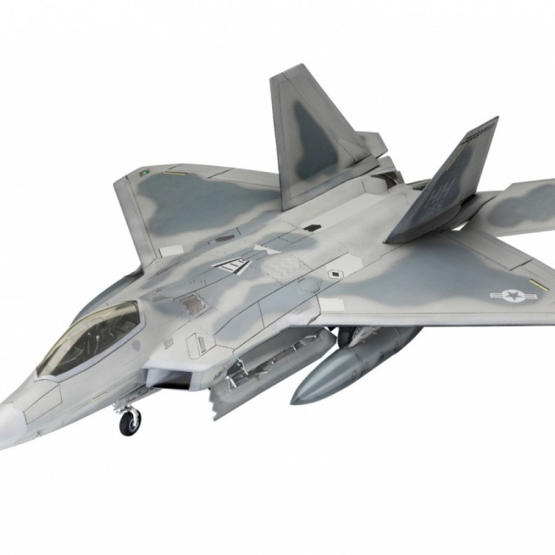 A model of the F-22, one of the most advanced combat aircraft of the US Air Force. It has higher speed than the F-15E, greater range and the most modern offensive and defensive avionics.