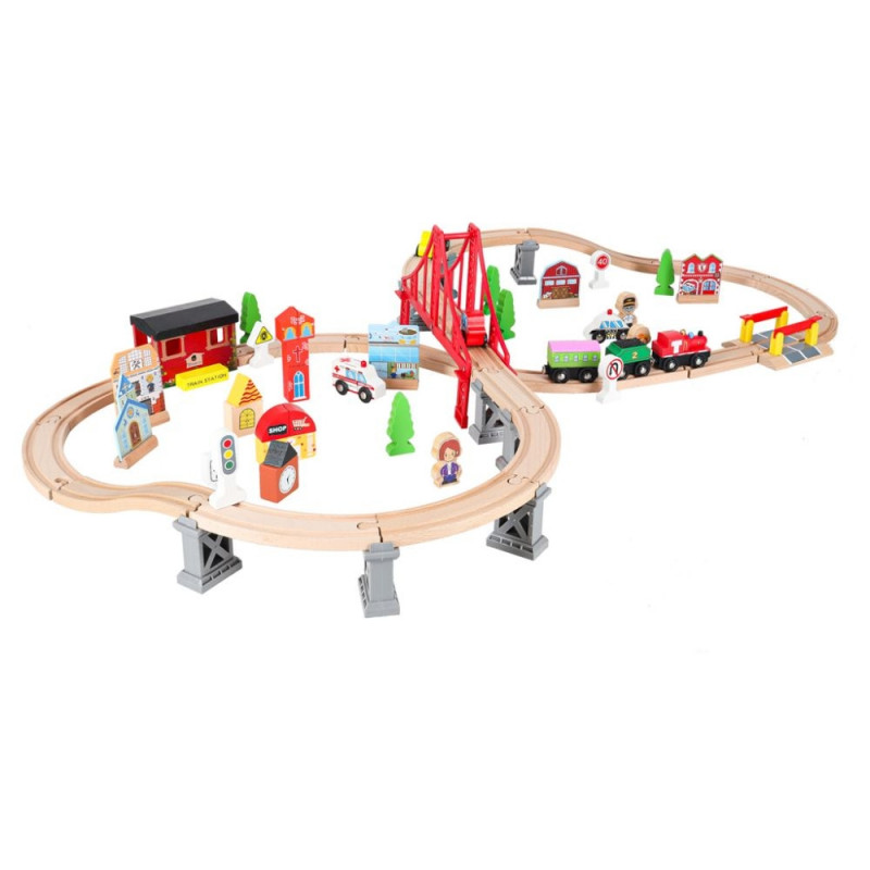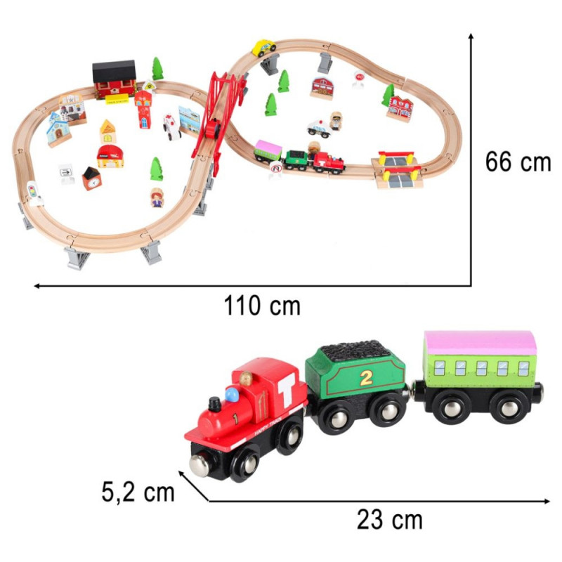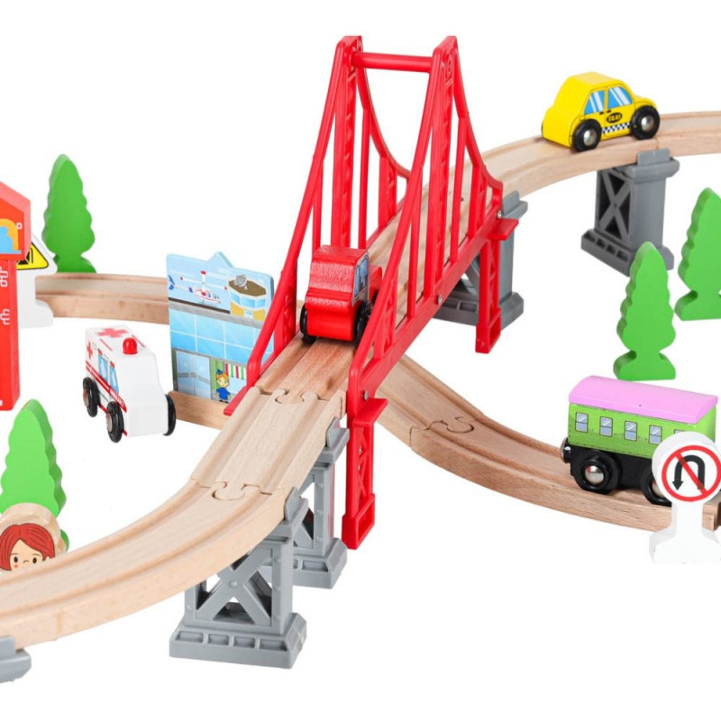 Puidust rong erinevate sõidukite jaoks koos paljude tarvikutega. Te võite paigutada elemendid nii, nagu teile meeldib. Mäng õpetab loovust, loogilist mõtlemist ja liiklusreegleid. Igas tükis on hoolitsetud kõige peenemate detailide eest. Mõõtmed: 110x66x20cm.Toode on arhiivis, kuvatakse vaid informatiivsel eesmärgil.