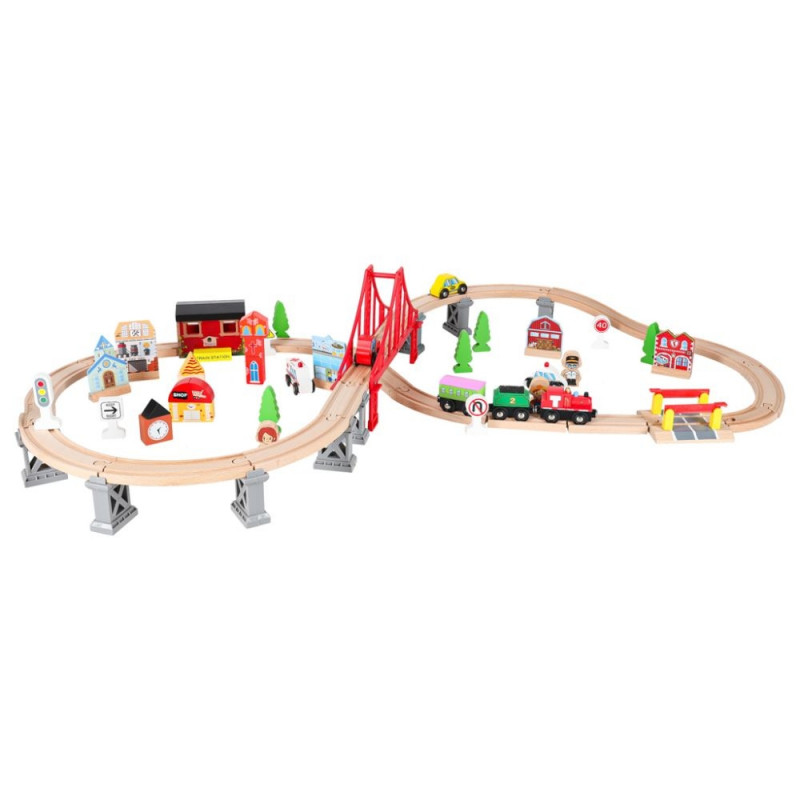 Puidust rongi/autode rada on tõeline maiuspala väikestele! Värvilised tükid erakordsete maastike loomiseks. Ulatuslik komplekt - kuni 70 elementi ! - annab praktiliselt piiramatud loomingulised võimalused.