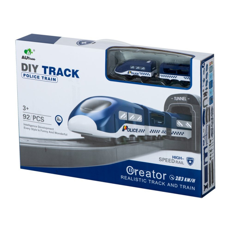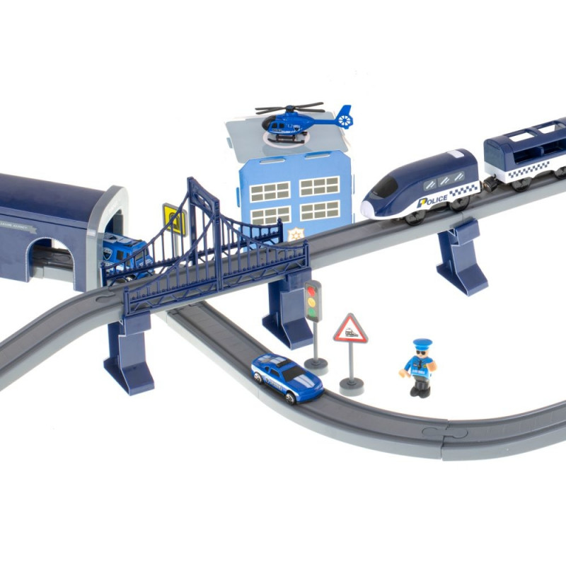 Suur elektrirong, mis on politseiteemaline. See mänguasi rõõmustab nii nooremaid kui ka vanemaid kasutajaid. Mäng arendab ruumilist orienteerumist, tehnilist tunnetust ja kujutlusvõimet. Toiteallikas: 2 AAA patareid. Komplekt sisaldab 92 elementi, sealhulgas: helikopter, tunnel.Toode on arhiivis, kuvatakse vaid informatiivsel eesmärgil.