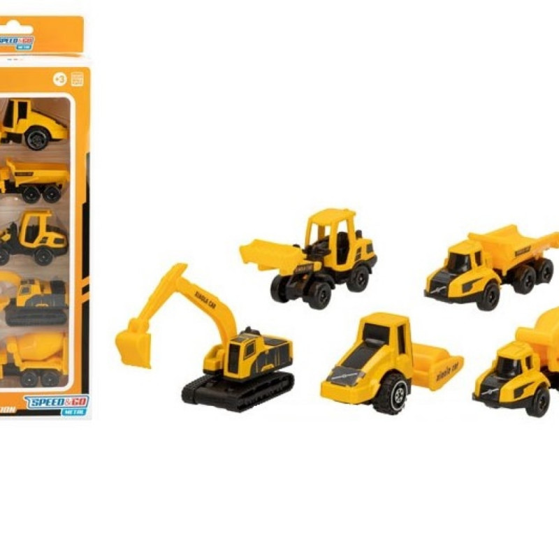 Komplektis on 5 kollast ehitusautot. Ühe auto laius on umbes 4 cm.