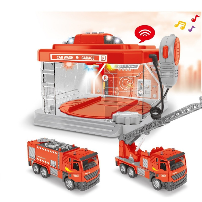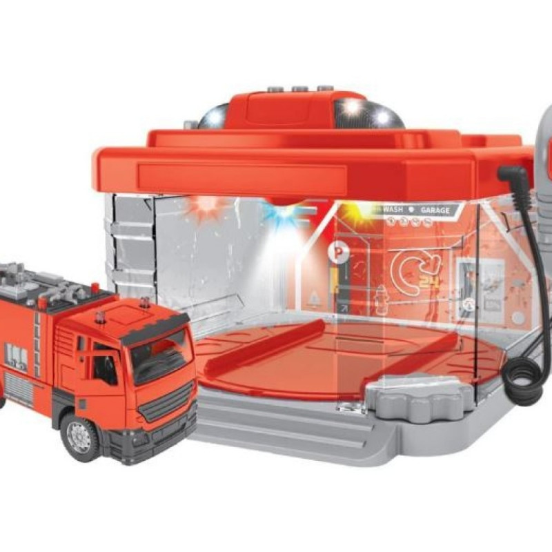 Autopesula ja metallist tuletõrjeauto heli ja valgusega