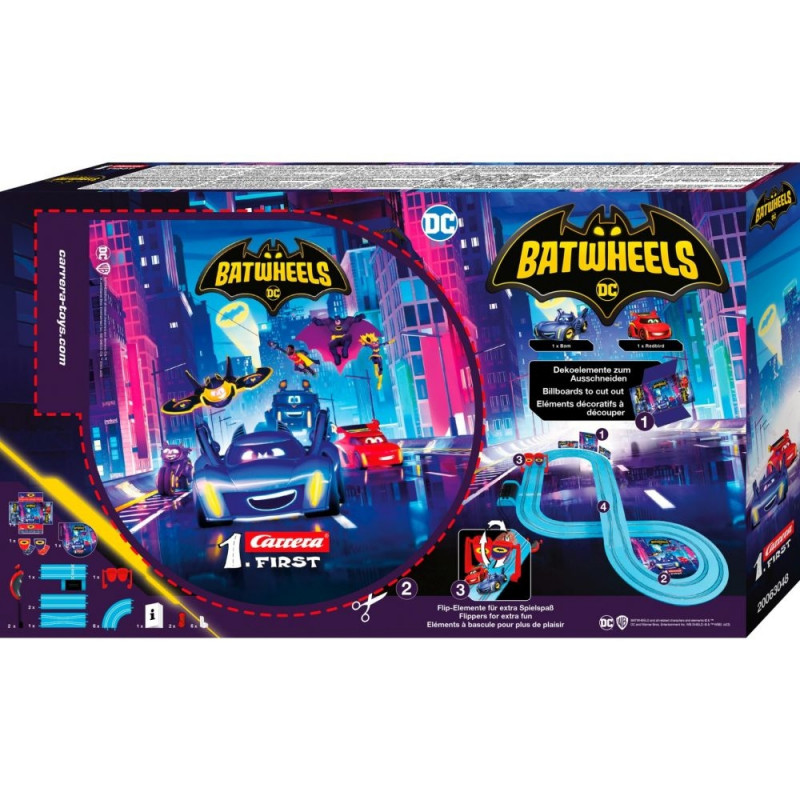 Valmistu põnevaks sõiduks Batwheelsi meeskonnaga sellel lahedal Carrera FIRST Ready to Roll võidusõidurajal! See komplekt on ideaalne väikestele võidusõiduhuvilistele alates 3. eluaastast, pakkudes tundide viisi lõbusat ja kaasahaaravat mängu.