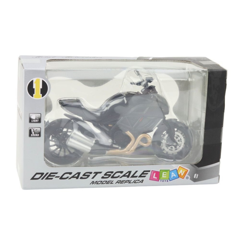 Mudelit on varustatud valgus- ja heliefektidega, mis aktiveeritakse kolme AG13 patarei abil (komplektis kaasas). Lisafunktsioonid suurendavad mängu realismi, muutes mootorratta välimuse ja heli tõelise sõiduki omaks. Dünaamiline, sportlik must disain on inspireeritud klassikalistest võidusõidumootorratastest, mis annab mudelile autentse iseloomu.