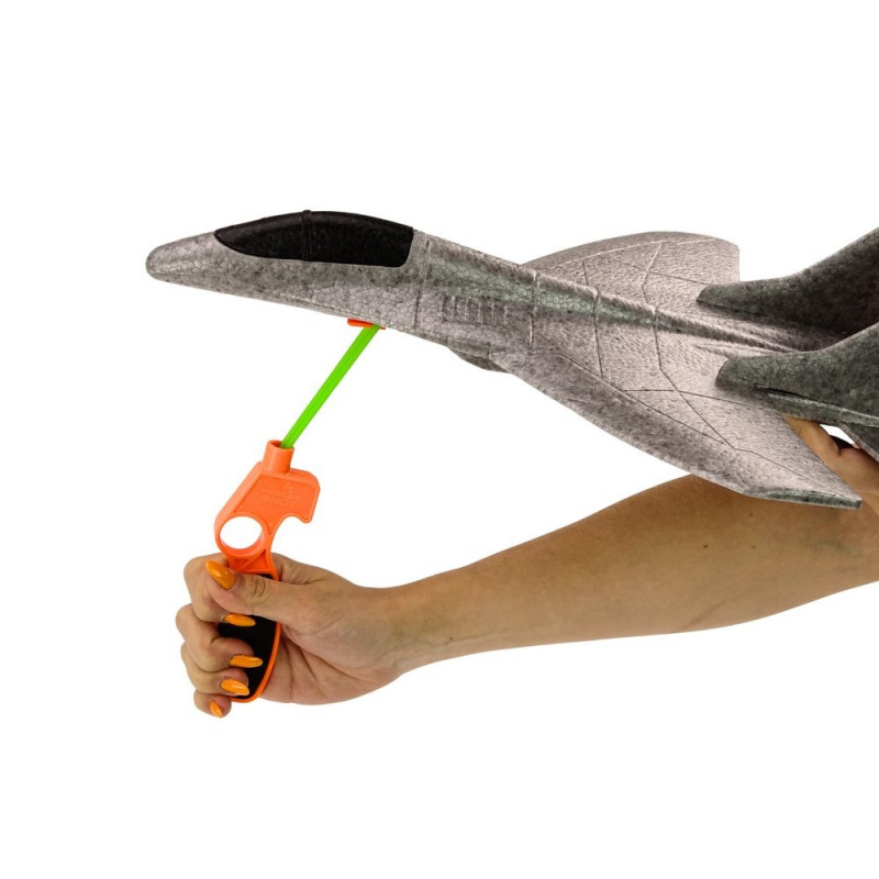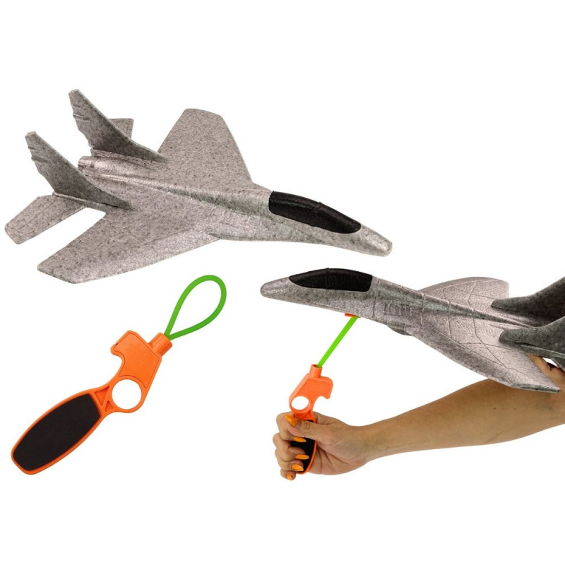 Samolot Myśliwiec Styropianowy Z Procą Wyrzutnia Szary