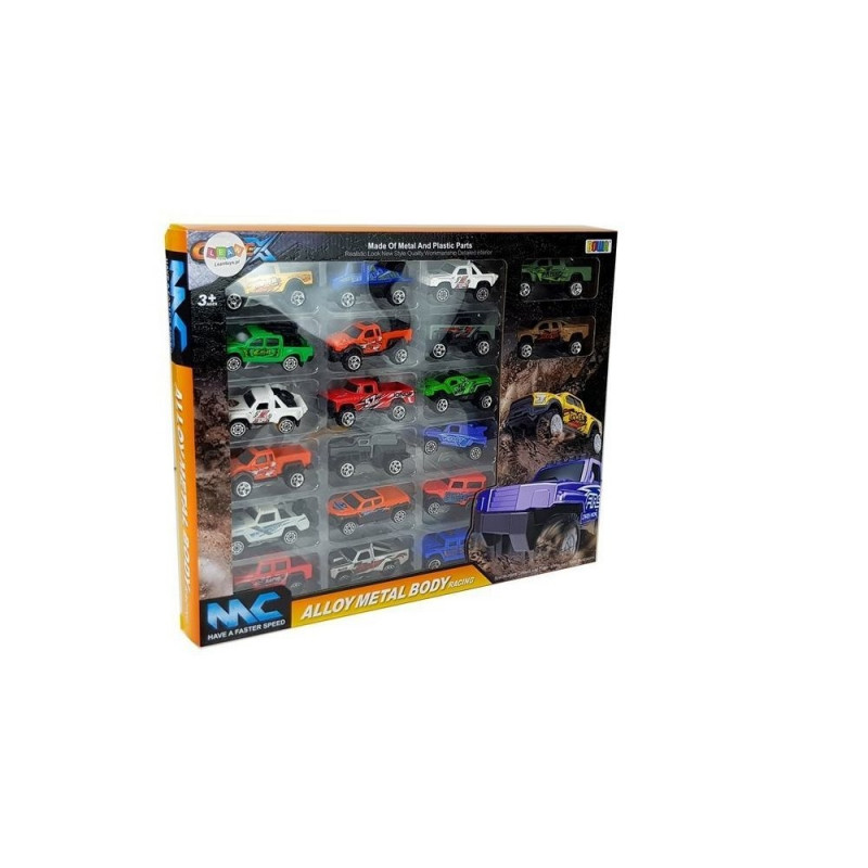 Paljud maastikuautod ja jeepid täiendavad iga autohuvilise kollektsiooni. Saad luua ekstreemseid takistusradu autodele. Iga detail on valmistatud väga hoolikalt ja täpselt. Komplektis on 20 autot, igaüks omanäoline, erinevat värvi ja välimusega.