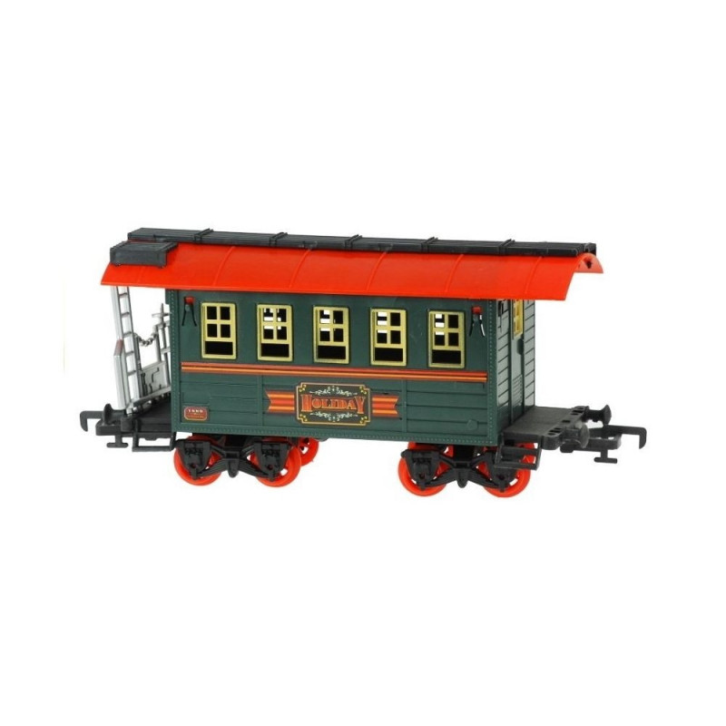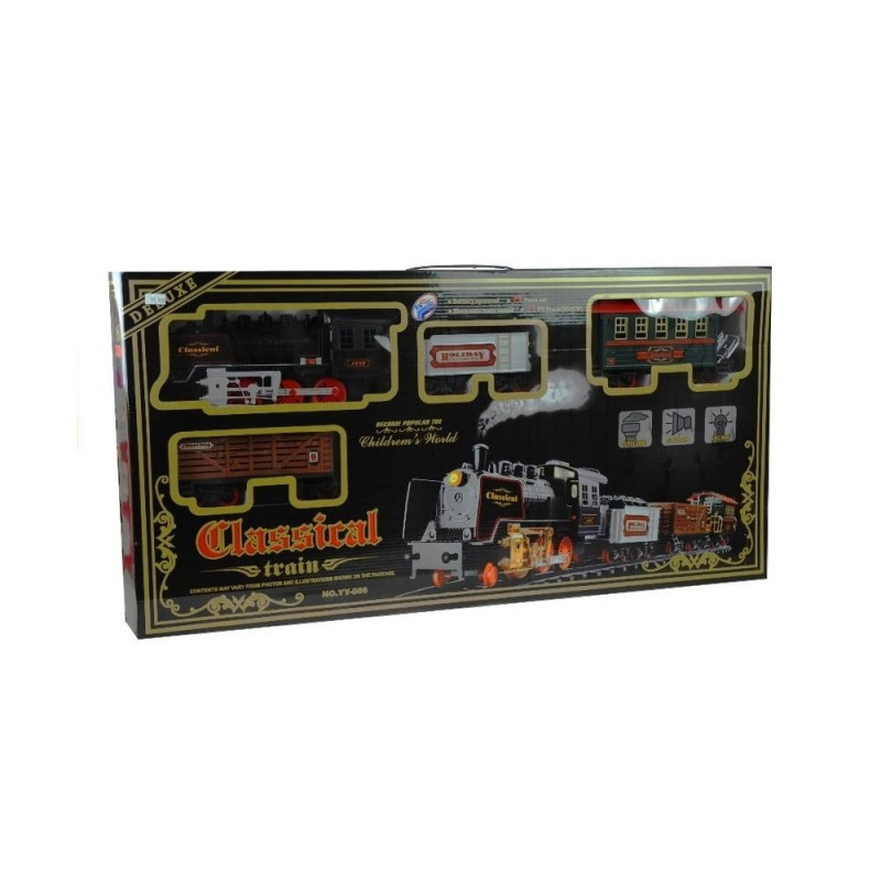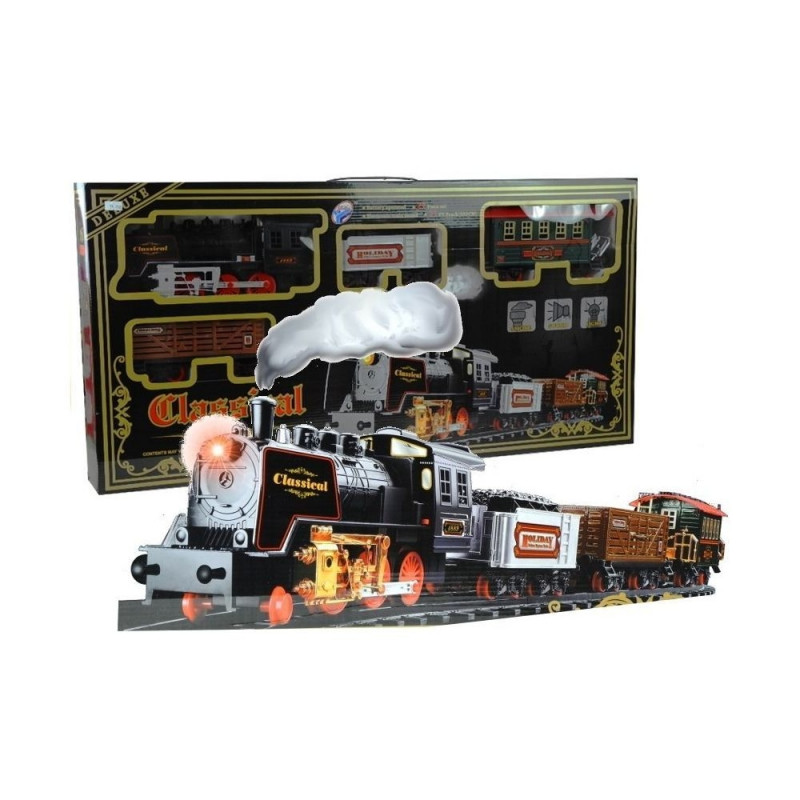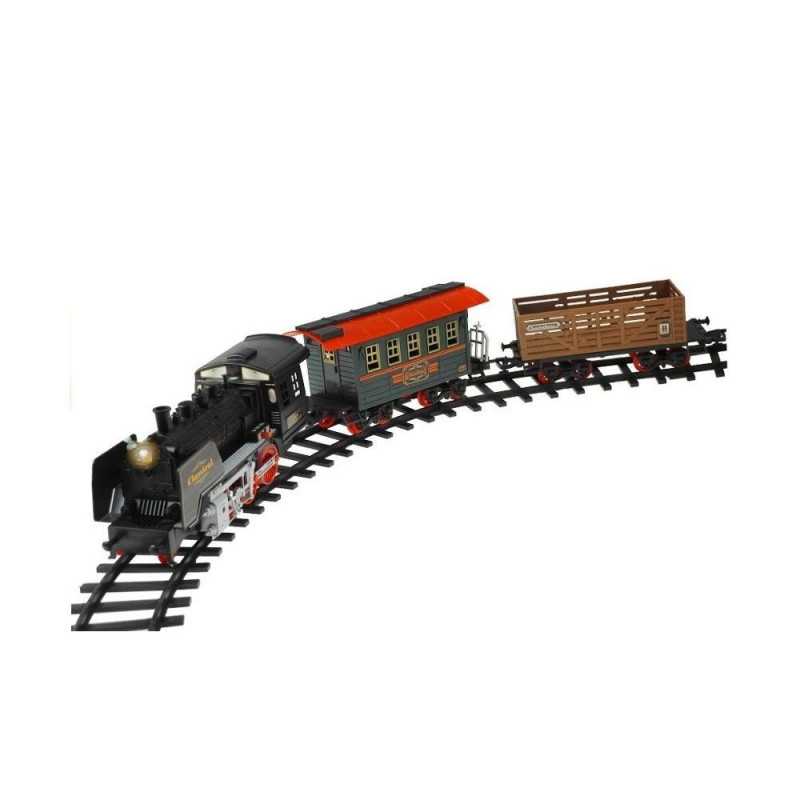 Elektrirong koos vagunitegaIgaüks meist, olenemata vanusest – olgu ta väike või suur –, armastab põnevat mängu, kus saab kasutada rongi ja pikki rööpaid. Esitletav komplekt, mis koosneb 27 elemendist, on suurepärane võimalus arendada lapse kujutlusvõimet ja loovust, samuti tema käelisi oskusi ning liigutuste koordineerimist. Lisaks on see suurepärane viis, kuidas vanemad ja lapsed saavad koos aktiivselt ja huvitavalt aega veeta. Unikaalsed emotsioonid, mis kaasnevad rööbaste ja rongi kokkupanekuga, on vaid sissejuhatus tõeliselt lõbusale pereajale. Äärmiselt realistlik rongi välimus ning muljetavaldava pikkusega rööpad kutsuvad iga last selle vahva mängu juurde. Miks tasub valida just see komplekt? Tänu disainile, kvaliteedile ja suurepärastele efektidele.Komplekti kuulub:- vedur,- 3 vagunit,- rongijaam,- 22 erinevat rööpa.Rööpad paistavad silma oma pikkusega – kokku ulatuvad need lausa 650 cm-ni. Nende ühendamine on väga lihtne ja vastupidav. Huvitav on ka see, et rööpaid saab paigutada erinevatesse kombinatsioonidesse, mis muudab mängu veelgi mitmekesisemaks. Rongivedur sõidab edasi ja tagasi, paiskab korstnast suitsu ning sellega kaasnevad realistlikud heli- ja valgusefektid. Komplektis olevad vagunid saab rongi külge kinnitada vastavalt oma soovile – see mehhanism on väga intuitiivne. Komplektis on ka rongijaam, mis teeb sellest komplektist tervikliku ja erakordselt huvitava mänguasja.Kõik osad on pakitud suurde, elegantsesse akendega karpi, kust on näha iga vagun eraldi. Pakendil on ülaosas käepide, mis muudab mänguasja kandmise lihtsaks – ning kokkupanduna võtab see väga vähe ruumi. Mänguasi on mõeldud lastele alates 3. eluaastast. See on valmistatud vastupidavast, kõrgeima kvaliteediga materjalist, mis tagab, et rong kestab lapsel kaua. Plastik on varustatud CE-turvasertifikaadiga, mis kinnitab vastavust Euroopa Liidu nõuetele. Elektrirong töötab 6 AA 1,5 V patareiga, mis ei kuulu komplekti. Need tuleb paigaldada suurima rongi alla, nagu on täpselt näidatud karbi alumises osas.Elementide mõõdud:- vedur: 30 cm x 8,5 cm x 13,5 cm,- hõbedane vagun: 16 cm x 9 cm x 9,5 cm,- roheline vagun: 22 cm x 8,5 cm x 13 cm,- pruun vagun: 22,5 cm x 8 cm x 9 cm,- jaam: 16,5 cm x 7 cm x 5 cm.