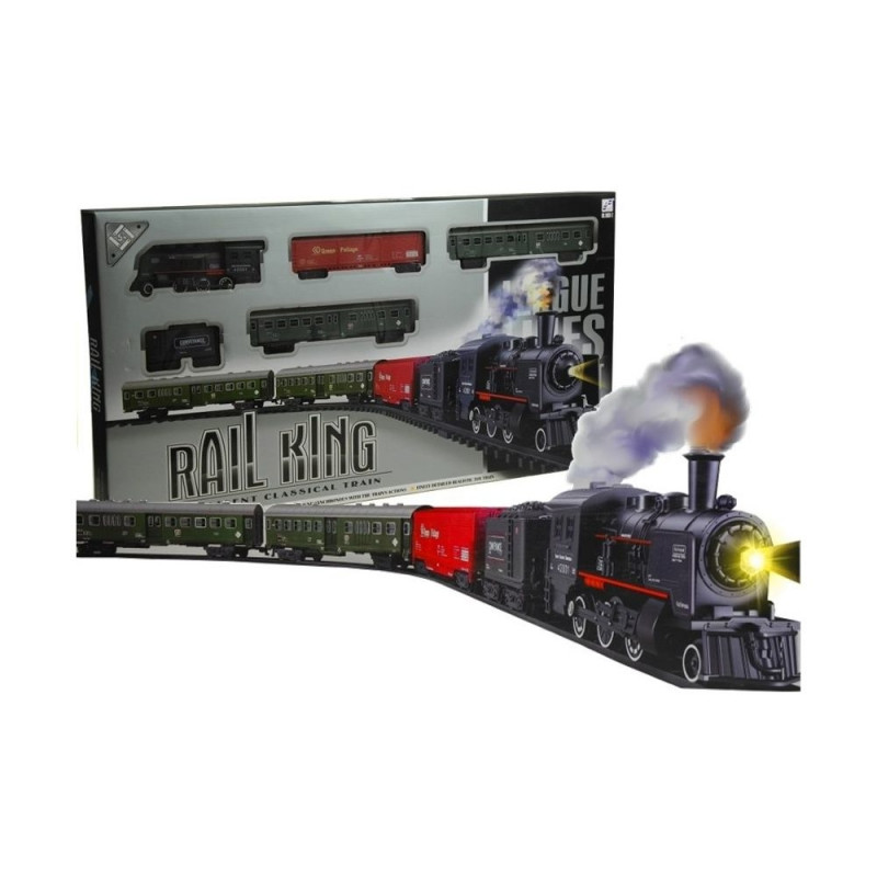 Suur elektrirong suitsuga Kutsume kõiki erakordsele rännakule kujutlusvõime maale! Palun astuge peale! Igaüks meist, nii väike kui suur, armastab mängida elektrirongiga. See on suurepärane võimalus arendada kujutlusvõimet, loovust, käelisi oskusi ning liigutuste koordineerimist lapsel. Lisaks muudab rongiga mängimine, milles osalevad nii vanemad kui ka lapsed, selle lastele unustamatuks ajaks. Emotsioonid, mis tekivad juba rööbaste ja rongi üksikosade kokkupanemisel, on alles sissejuhatus tõeliselt lõbusale pereajale. Komplektis on:- vedur,- kaubavagun,- 3 väikest vagunit,- raudteejaam,- 2 puud,- rööpad,- veeanum. Suureks eeliseks on ellipsikujuline rada, mille mõõdud on umbes 78 cm x 156 cm. Nii suur rööbaste pind tagab, et lõbus mäng ei lõpe niipea. Veel üheks mänguasja plussiks on suits, mis tuleb veduri korstnast, ning valguselemendid, mis muudavad mängu veelgi põnevamaks. Rööpad on iseloomuliku ja lihtsa ühendusviisiga, millega saavad lapsed ise hakkama. Kõik karbis olevad osad on disainitud tähelepanuga iga detaili suhtes ning valmistatud kõrgeima kvaliteediga plastist, mis tagab mänguasja suure vastupidavuse ja pikaealisuse. Vedur, taristu elemendid ja rööpad jäljendavad täissuuruses detaile kõige pisemategi nüanssideni, mis muudab mängu veelgi nauditavamaks. Rong töötab 4 "AA" 1,5 V patareiga, mis ei kuulu komplekti. Need tuleb asetada kaubavagunisse ning seejärel ühendada veduriga. Komplektis on ka veepudel/dosaator, mille abil tekib veduri korstnast iseloomulik suits. Tuleb siiski meeles pidada, et pärast iga patareide paigaldamist ja rongi sisselülitamist tuleb oodata umbes 2 minutit, kuni küttekeha soojeneb ja veetilk jõuab veduri korstna kambrisse. Rong koos tarvikutega on pakitud akendega karpi, milles saab selle kinkida suurepärase kingitusena. Toode omab CE-sertifikaati, mis kinnitab vastavust Euroopa Liidu direktiividele. Komplekt on mõeldud kõigile üle viie aasta vanustele lastele.Valitud elementide mõõdud: