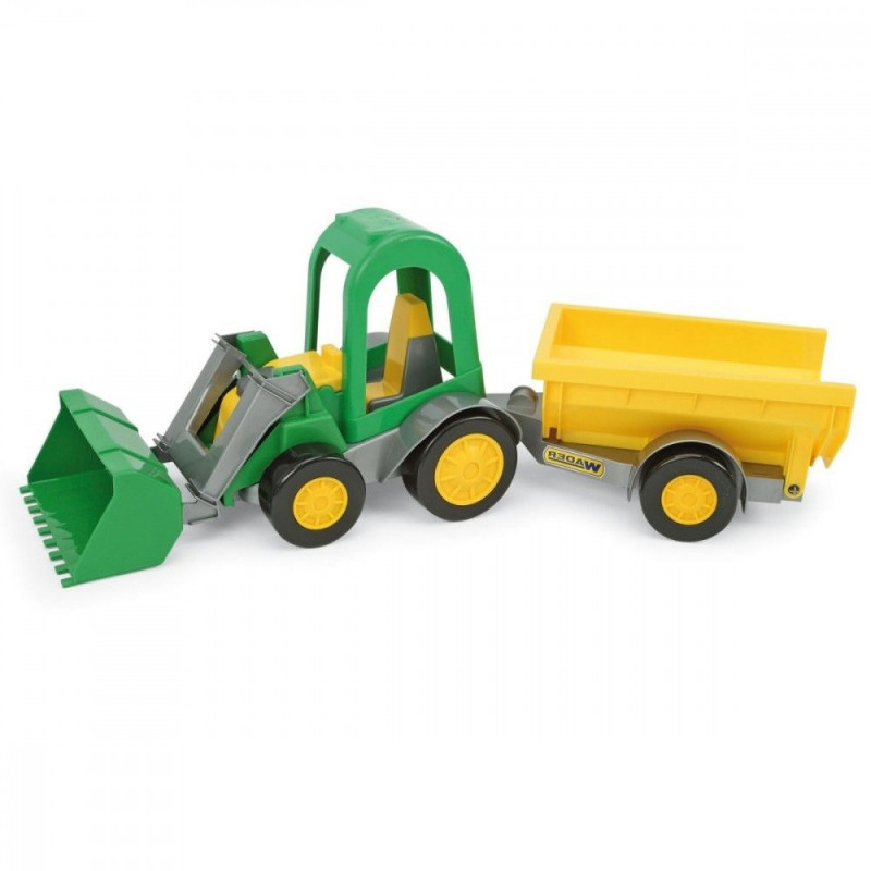 Color Cars sarja laadur-haagis on suurepärane mänguasi kõige noorematele ehitushuvilistele. Värvikad sõidukid paistavad silma tugeva teostuse, kerge konstruktsiooni ja lihtsa juhitavuse poolest. Komplekti kuuluvad: traktor-laadur liikuva kopaga ning haagis tõstetava ja langetatava kastiga. Traktorit saab kasutada ehitamiseks, laadimiseks ja teisaldamiseks. Liikuv kopp võib toimida nii lükkuri kui ka laadurina, mis muudab mängu veelgi põnevamaks. Mäng laaduriga ja kallurhaagisega arendab lapse loovust ja kujutlusvõimet, parandab tema käelisi ja motoorseid oskusi ning silma-käe koordinatsiooni. Erinevat värvi detailid aitavad õppida põhilisi värve. Sõidukid sobivad suurepäraselt nii üksi kui ka koos teistega mängimiseks, mis toetab eakaaslastega suhtlemist ja arendab laste sotsiaalseid oskusi. Kõik osad on valmistatud kvaliteetsest, vastupidavast ja ilmastikukindlast plastikust, mistõttu sobib mänguasi ideaalselt kasutamiseks rannas, kodus või liivakastis. Komplekti kuuluvad: traktor ning haagis tõstetava ja langetatava kastiga.