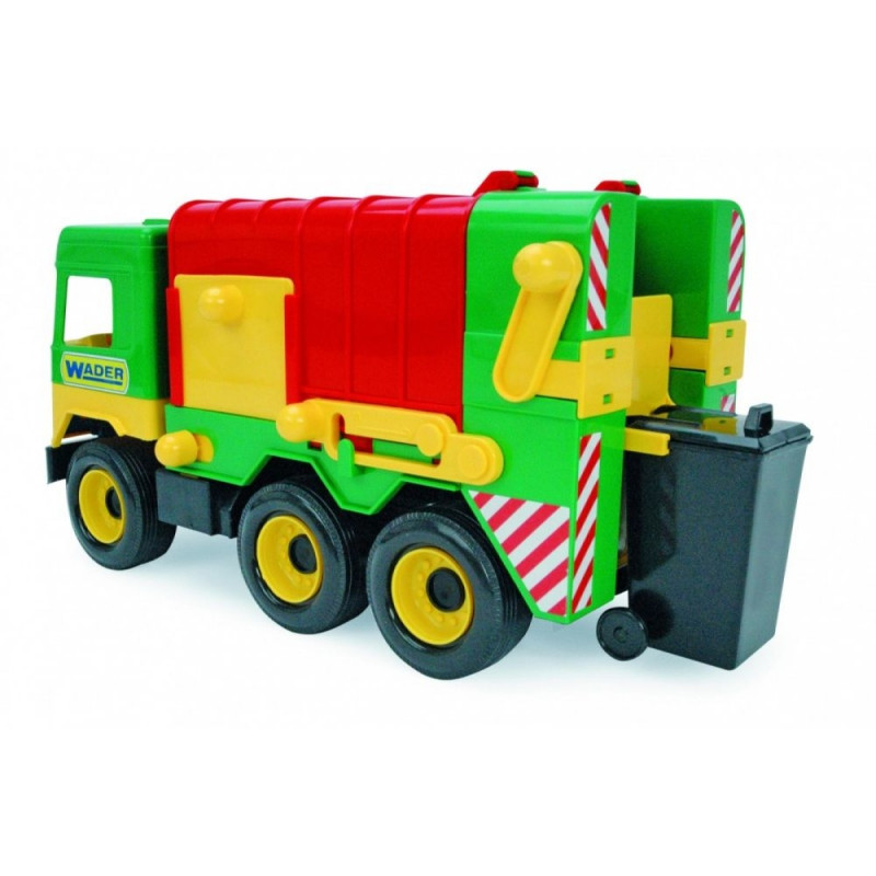 Tugevalt ehitatud, 42-sentimeetrine prügiveok, mis on varustatud prügikonteineri, liikuva tõstuki, mis võimaldab konteinerit tühjendada, ning avatava tagaluugiga.