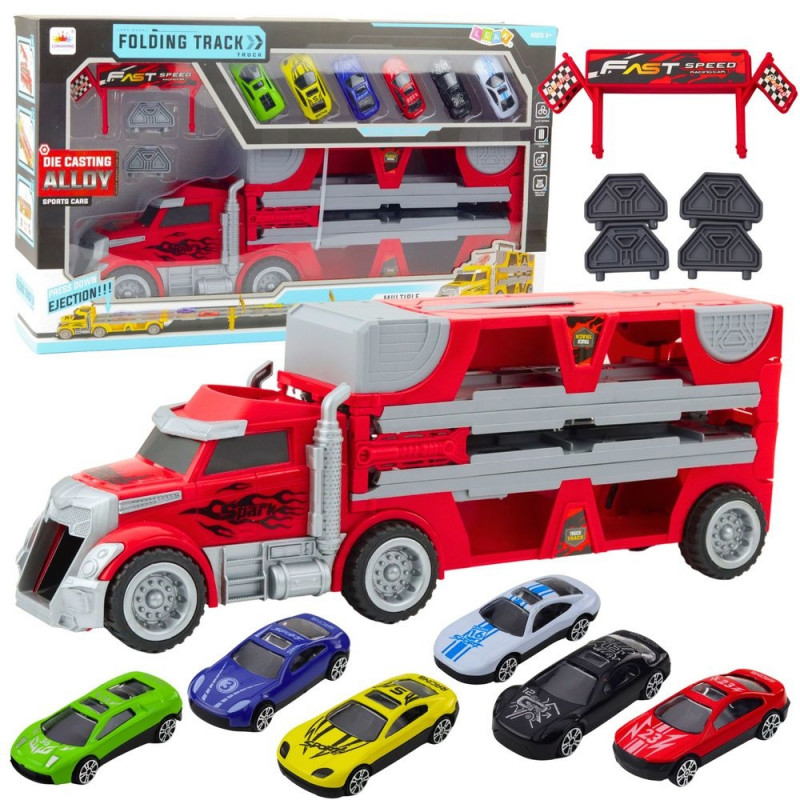 Lahtikäiv veoauto võidusõidurajaga on tõeline maiuspala väikestele autospordisõpradele. See innovatiivne mänguasi ühendab endas transpordisõiduki funktsiooni ja dünaamilise võidusõiduraja. Kui haagis lahti teha, tekib üle meetri pikkune rada, mis võimaldab põnevat mängu kaasasolevate väikeste autodega. Tänu realistlikule disainile ja hoolikale teostusele pakub komplekt pikki tunde loovat meelelahutust.
