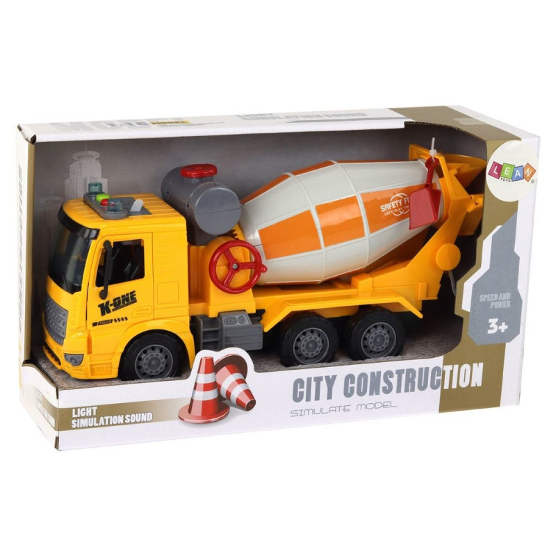 Betoniarka veoauto pöörlev trummel heli tuled kollane 1:16
