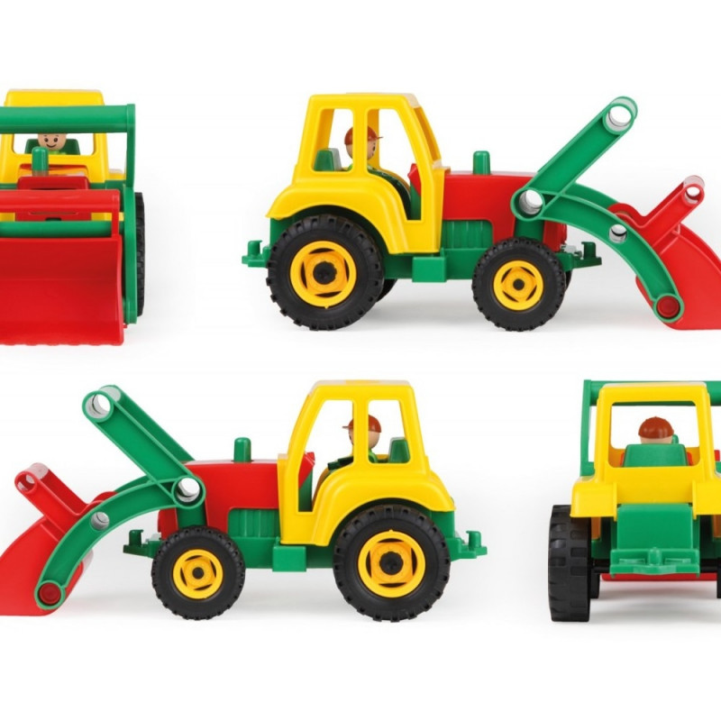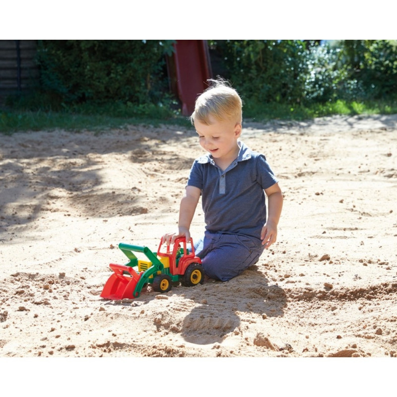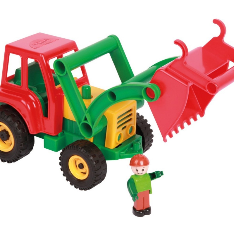 Värviline 35 cm pikkune ekskavaator, valmistatud kvaliteetsest elastsest plastikust, mis vastab Euroopa standarditele. Funktsionaalne auto, liivakühvel saab kinnitada kallurile või mujale.