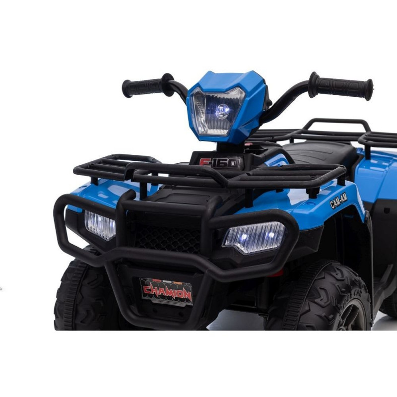 Akuga sõiduk Värv: Sinine Mudel: JC915 Tehnilised andmed Mootor: 2x45W Aku: 12V4,5Ah Kiirus: 2,5–3,5 km/h Sõiduki mõõdud: 88 cm x 46 cm x 51 cm Tühimass: 9 kg Maks. kandevõime: 25 kg Laadimisaeg: 8 tundi Tööaeg: kuni 1 tund Pidur: Automaatne – töötab gaasipedaali vabastamisel Varustus Audio: Muusikapaneel MP3 ja USB-ga Tuled: Eesmine LED Iste: Plastikust Rattad: Plastikust Võtmed: ?Toote koodid