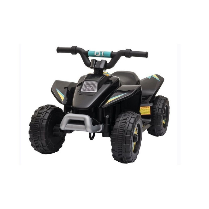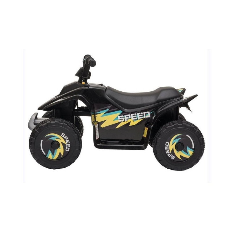 Akutoitel sõiduk Mudel: Quad XMX612 Värv: Must Tehnilised andmed Vedav mootor: 1x35W Aku: 6V7Ah Käigukast: 2 käiku (edasi/tagasi) Sõiduki mõõdud: 72 cm x 40 cm x 46 cm Tühimass: 4,6 kg Maks. kandevõime: 30 kg Laadimisaeg: 8 tundi Tööaeg: kuni 2 tundi Pidur: Automaatne, töötab gaasipedaali vabastamisel Varustus Turvavööd: X Avatavad uksed: X Võtmed: X Istmeks: Plastik Rattad: Plastikust, kummiriba kattega Tuled: Kauba pikkus sentimeetrites: 40 Kauba kõrgus sentimeetrites: 40 Kauba laius sentimeetrites: 70 Mahukaal grammides: 18666,67 Lapse vanus: alates 3. eluaastastToote koodid