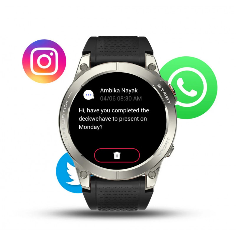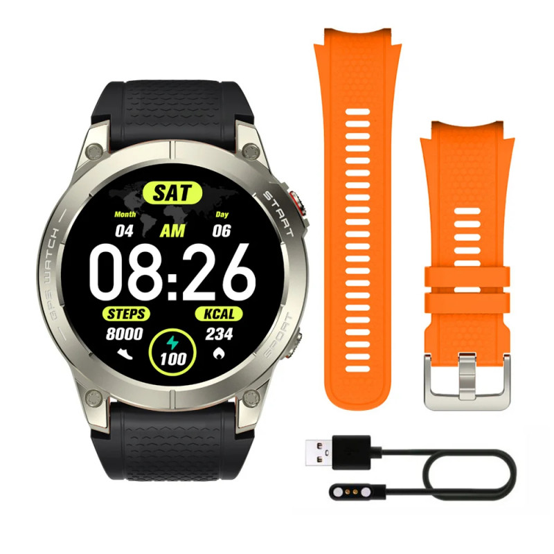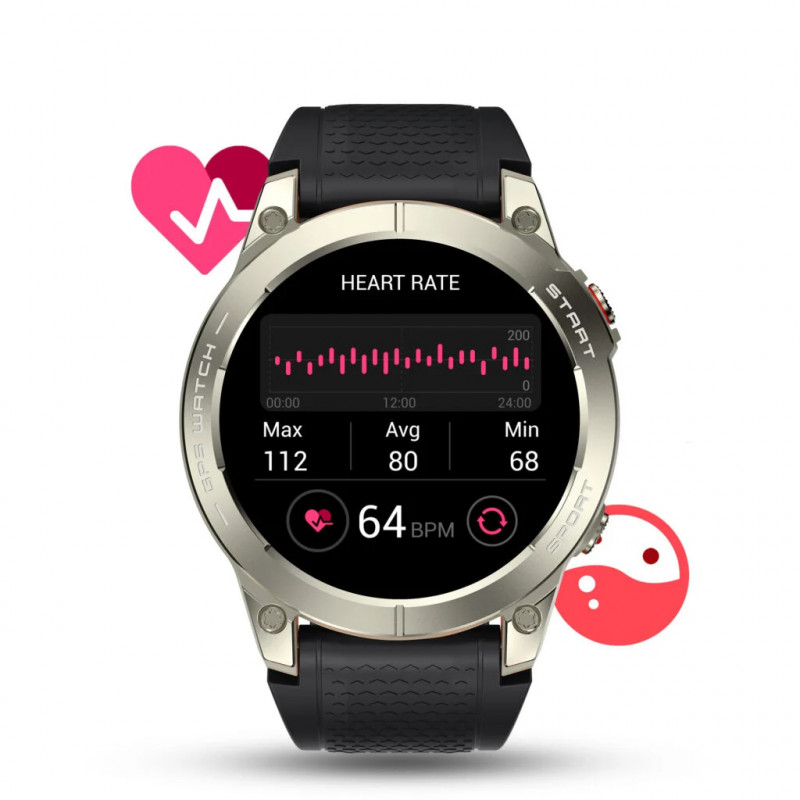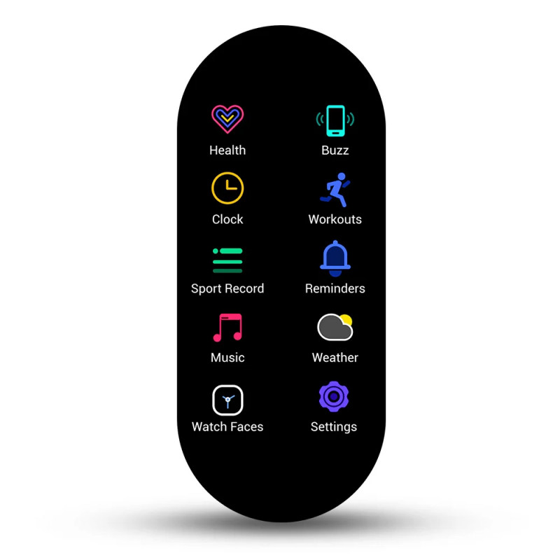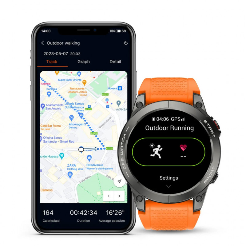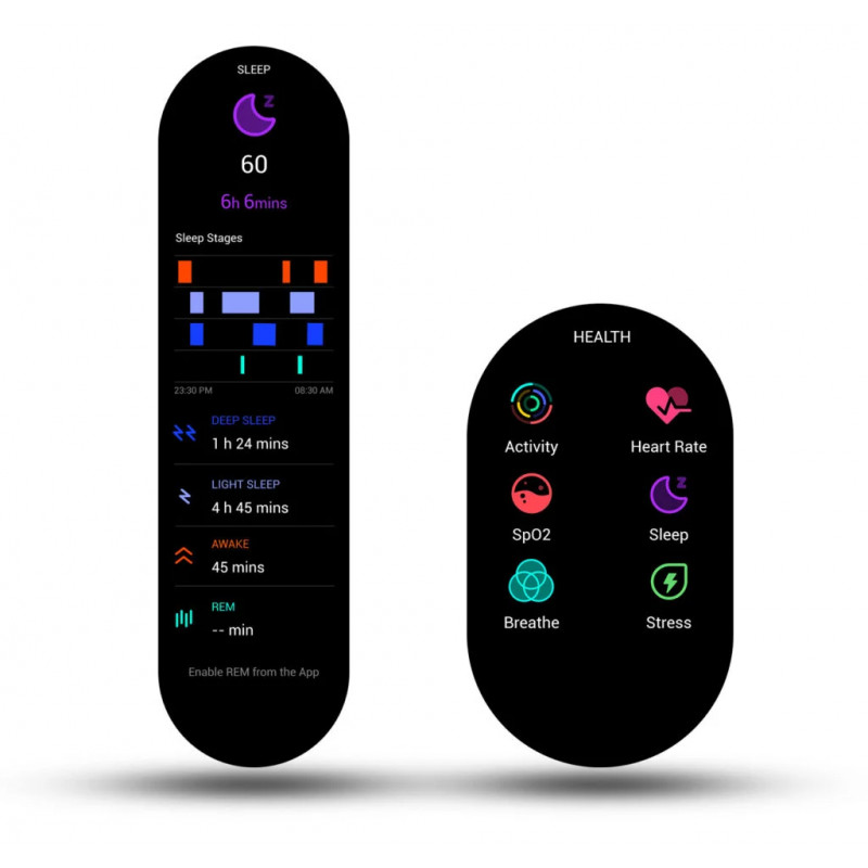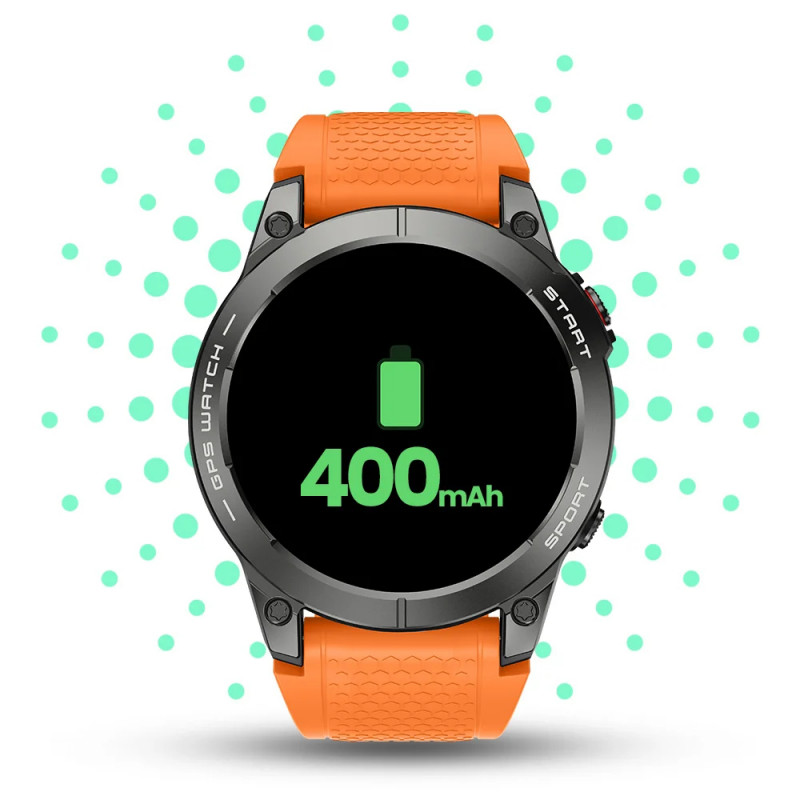 Tehnilised andmed Juhtmeta laadimine: jah Andmeedastus: Ei Side: Bluetooth Ühendused: magnetilised Süsteemi ühilduvus: Apple iOS 9.0+ / Android 5.0+ GPS: tegevusmarsruudi salvestamine Veekindel: IP67 Rihma materjal: Silikoon Korpuse materjal: plastik Korpuse laius: 47 mm Korpuse kõrgus: 47 mm Korpuse paksus: 15 mm Rihma pikkus: 220 mm Randme ümbermõõt: 14,5 - 23 cm Ekraani diagonaal: 1,43 tolli Ekraani eraldusvõime: 466x466px Aku tüüp: Li-Poly Aku maht: 400 mAh Andurid: güroskoop, kiirendusmõõtur, pulsimõõtja, sammulugeja Operatsioonisüsteem: oma Menüü keel: PL, EN, LT, LV, EE, SI, SK, HR, EL, CZ, ES, PT, SK, BG, HU
