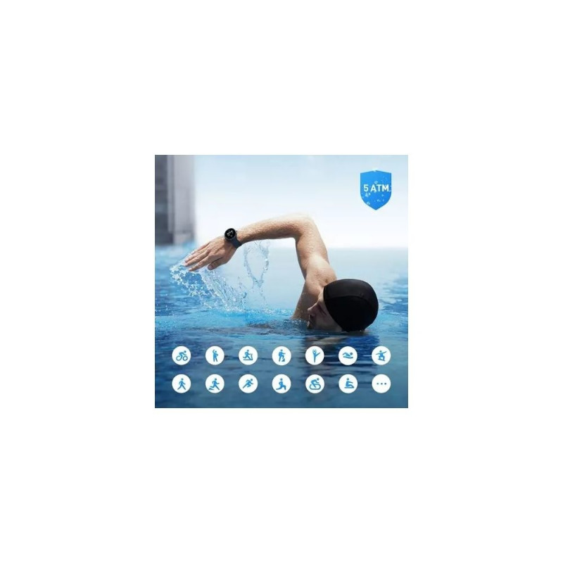 Muusika juhtimine on samuti muutunud lihtsamaks. Kasutades oma nutikella, saad sirvida oma esitusloendit, peatada või alustada oma lemmikmuusikat otse randmelt. Liigu oma lemmik rütmi järgi ilma oma sammu katkestamata. Veekindluse reitinguga 5ATM, saad kella kanda basseinis, avavees või sukelduda ilma hirmuta.