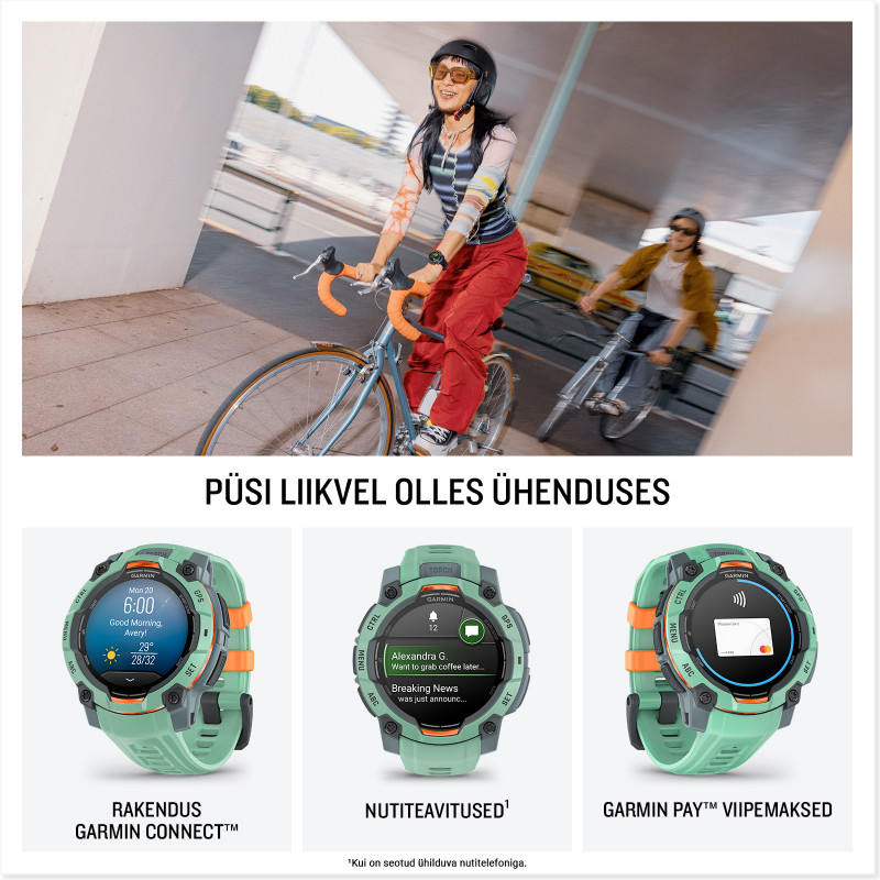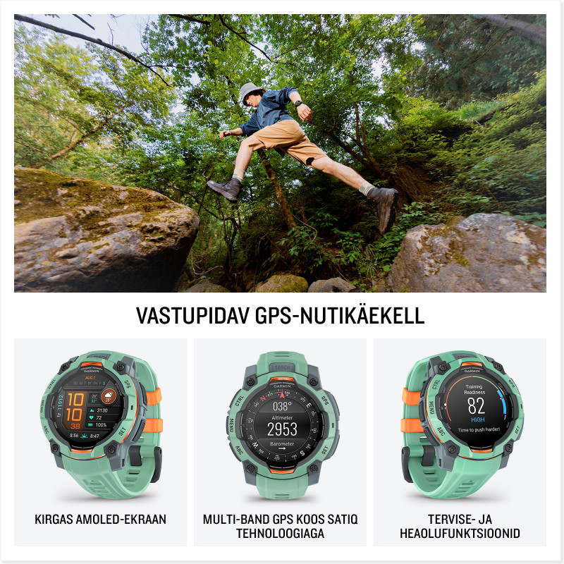Instinct 3 on vastupidav GPS-nutikell, mida võid kanda igal ajal. Ela julgelt oma seikluslikku elu.