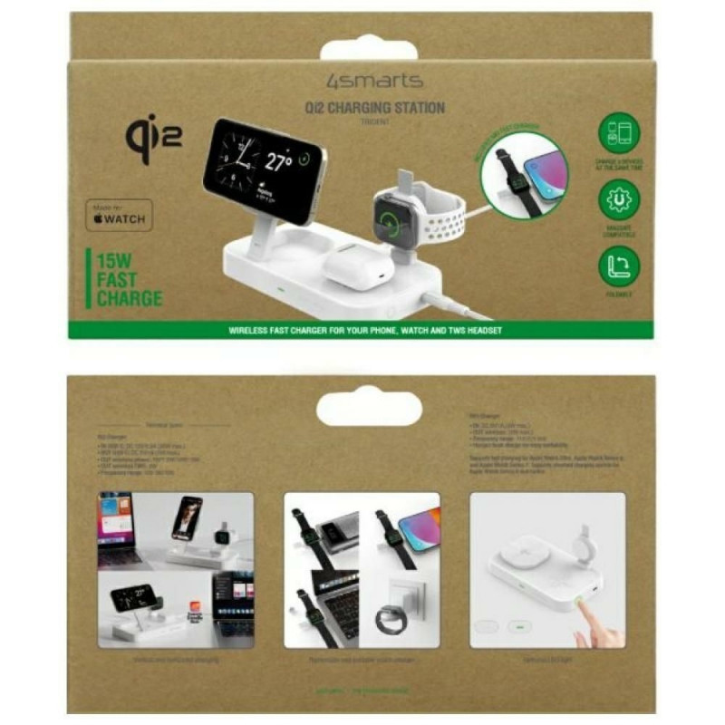 4smarts Qi2 Trident laadimisjaam MFI kiirlaadijaga Apple Watchi jaoks valge
