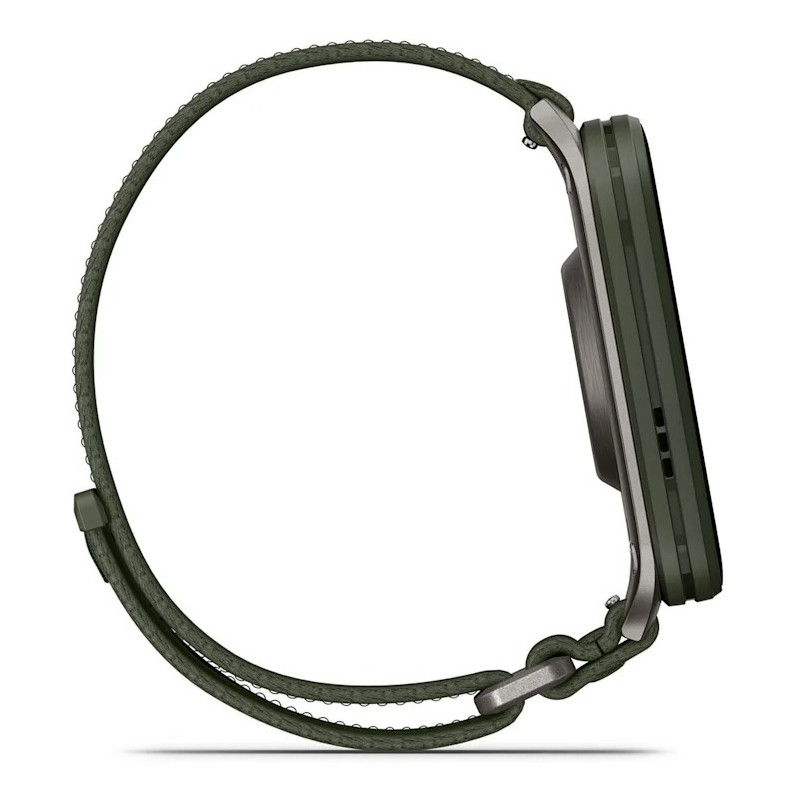 Vaata oma andmeid Garmini suurimalt 2-tolliselt AMOLED ekraanilt kriimustuskindla safiirklaasiga. Kella on terve päev mõnus kanda tänu kergele titaanist tagaplaadile, elegantsele kujundusele ja ComfortFit nailonrihmale.