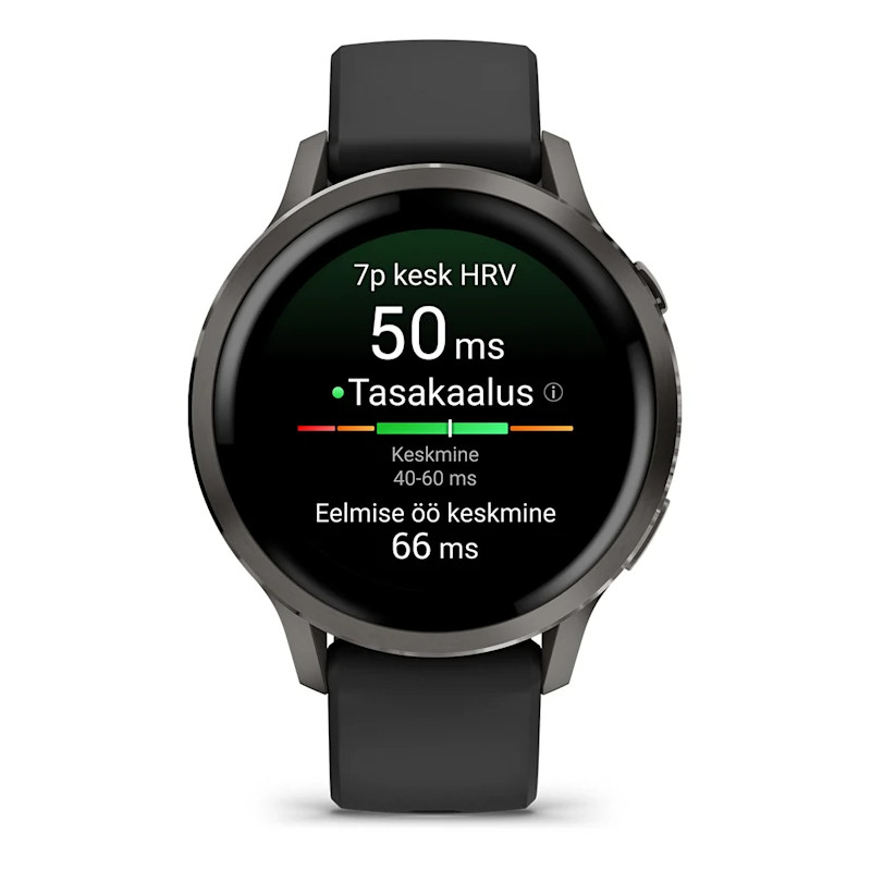 Garmin Venu 4 GPS-nutikell on täiustatud tervise ja vormisoleku funktsioonidega abiline sinu randmel, aidates sul oma keha paremini mõista ning tervislikumaid valikuid teha.